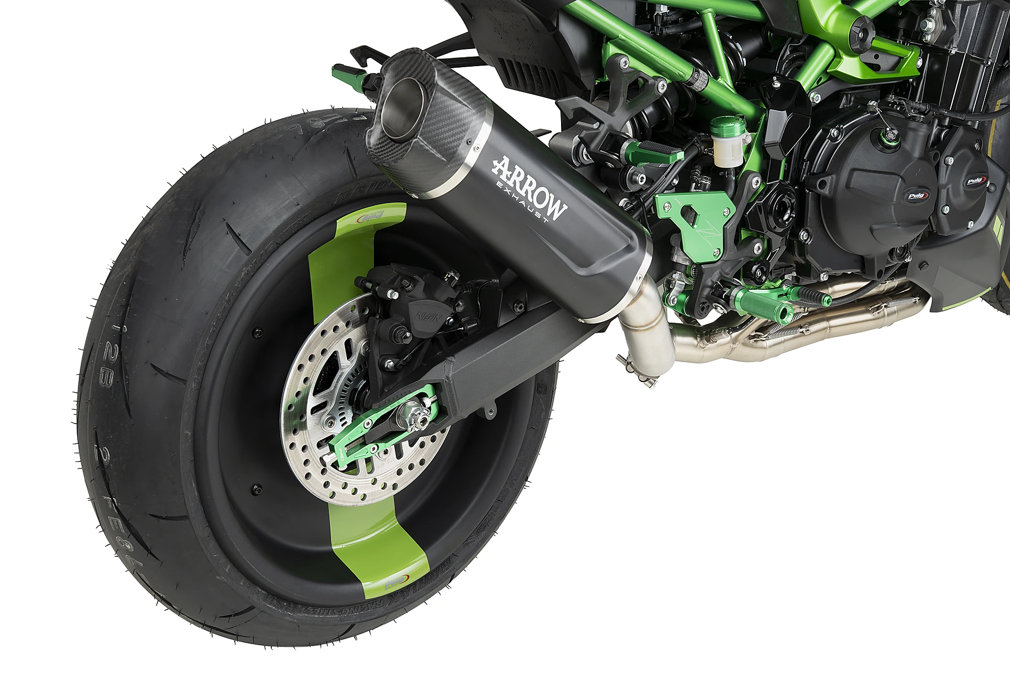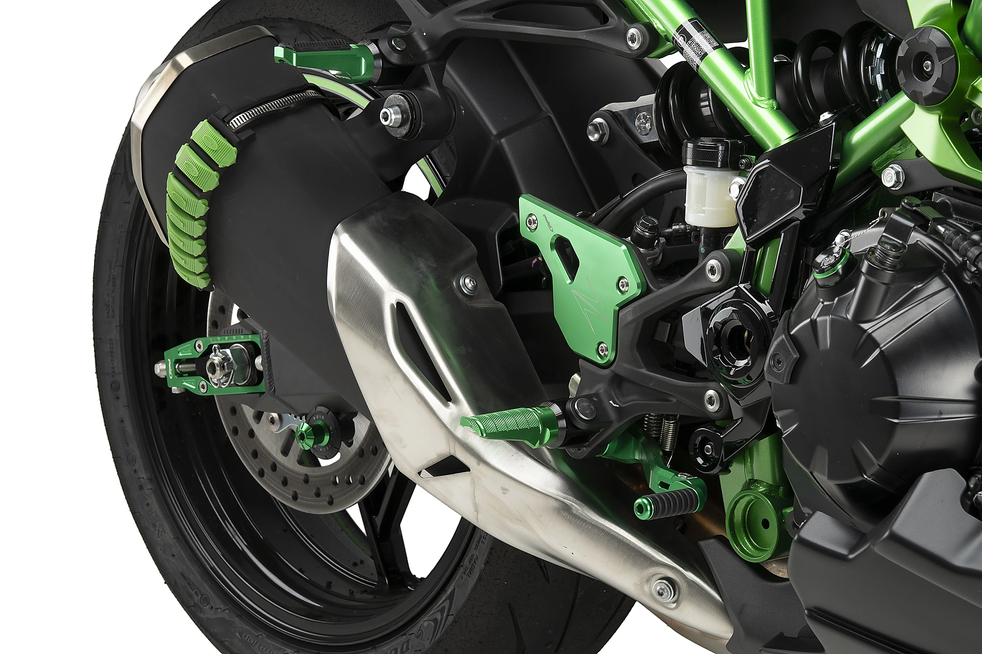 S'integra perfectament al buit del basculant de cada moto, i el seu anoditzat en una combinació de colors permet escollir l'opció que millor queda estèticament amb la nostra moto.