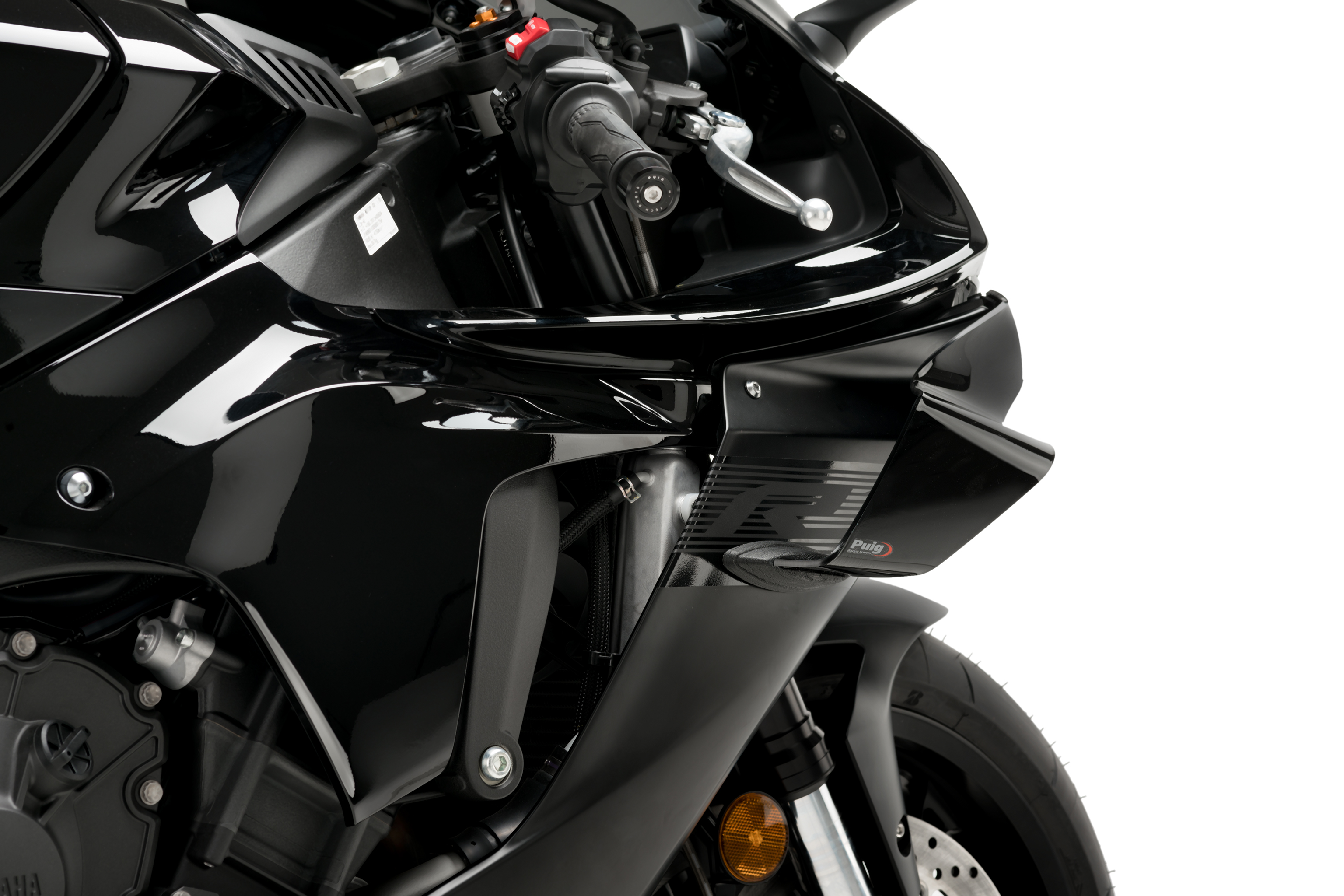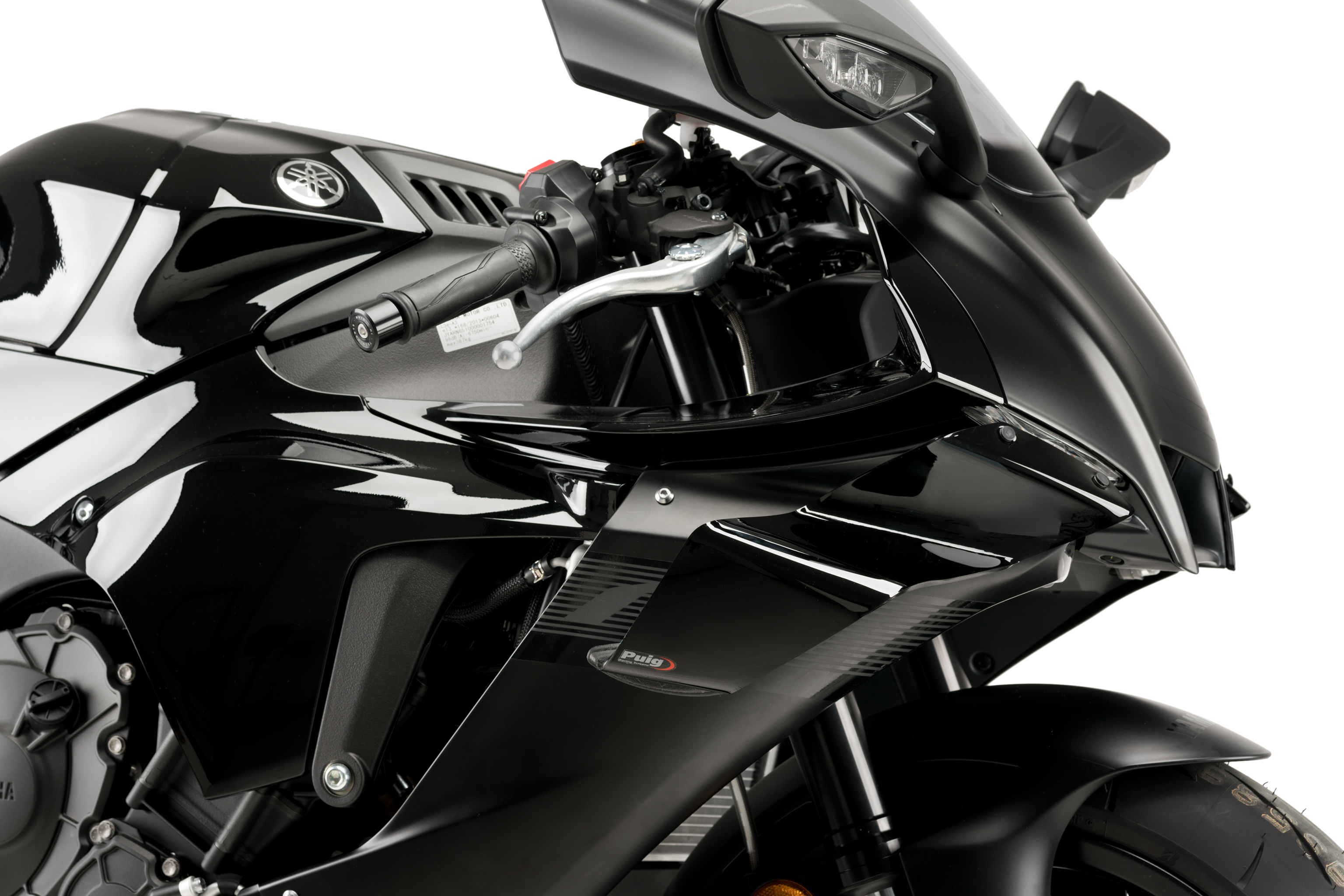 La nova gamma d'alerons frontals GP per a la Yamaha YZF-R1 de Puig han estat especialment dissenyats per dotar la teva moto de les prestacions aerodinàmiques més avançades del circuit Moto GP.
