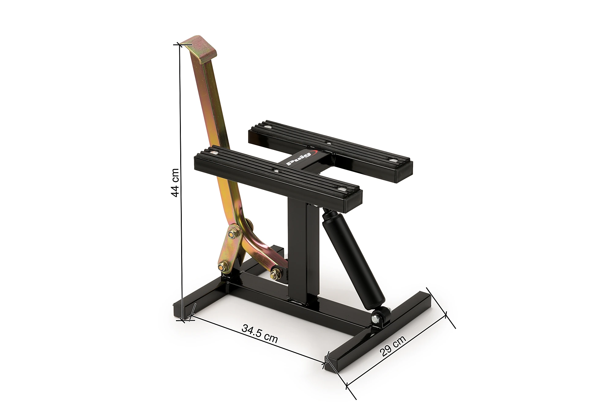 Fabricat en acer i pintat amb pintura Negra EPOXI, et permetrà aixecar la teva moto gràcies al seu mecanisme hidràulic, amb una alçada en la seva posició més baixa de 300 mm i 410 mm en la seva posició més alta.