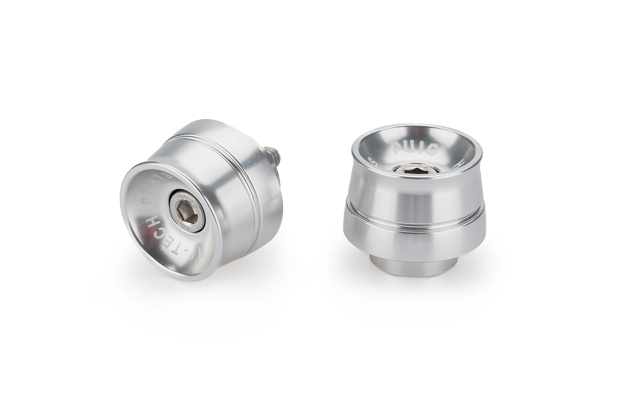 Mecanitzats a partir d’un bloc d’alumini i anoditzats en set colors diferents.