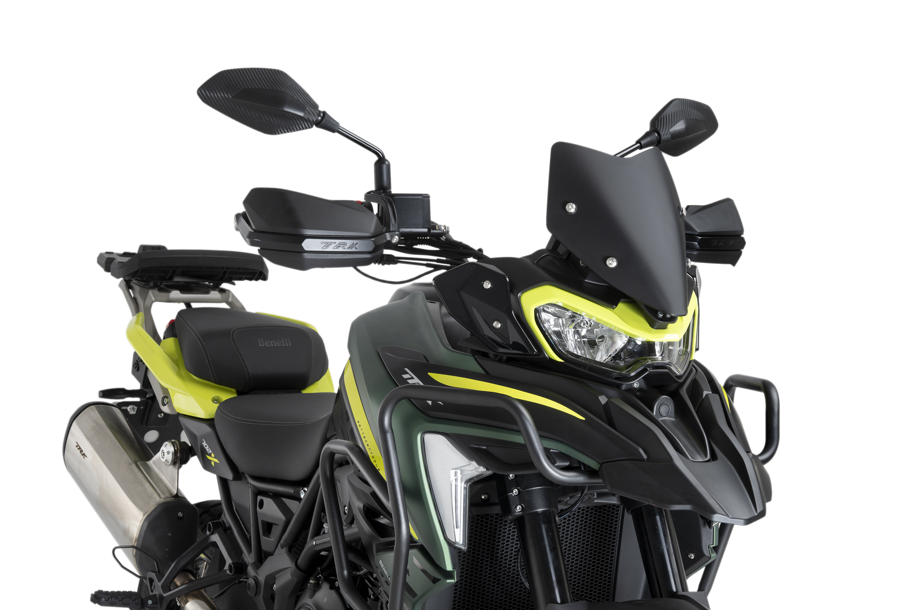 La pantalla Sport de Puig està disponible en color fumat clar, fumat fosc i negre mat per poder triar la que millor combina amb el Benelli TRK 702/702X’23. Per a qui necessiti més protecció aerodinàmica, està disponible la versió Touring.