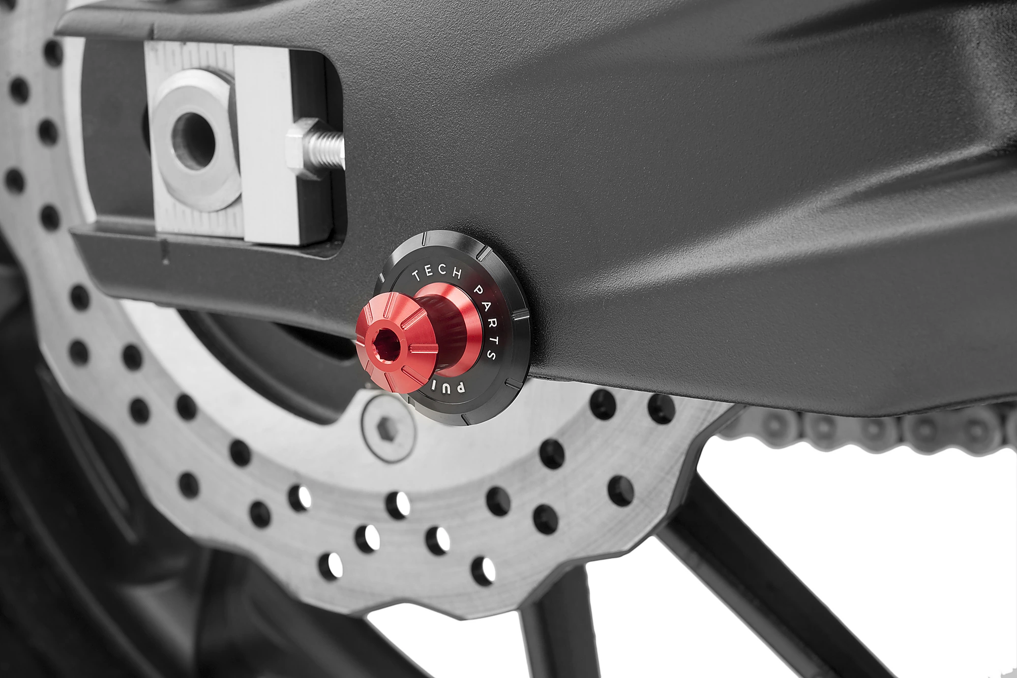 Els diàbolos serveixen com a guia d'encaix amb el cavallet per pujar la teva moto de manera fàcil, ràpida i segura. En aquest cas, us presentem el Diàbolo Pro de Puig. Fabricat a partir d'una massa d'alumini fresada i anoditzada (pes reduït de 32 gr), garantirà la protecció del basculant de possibles rascades gràcies a que ve acompanyat d'una volandera de niló de color negre amb la serigrafia Puig Hi-Tech Parts.