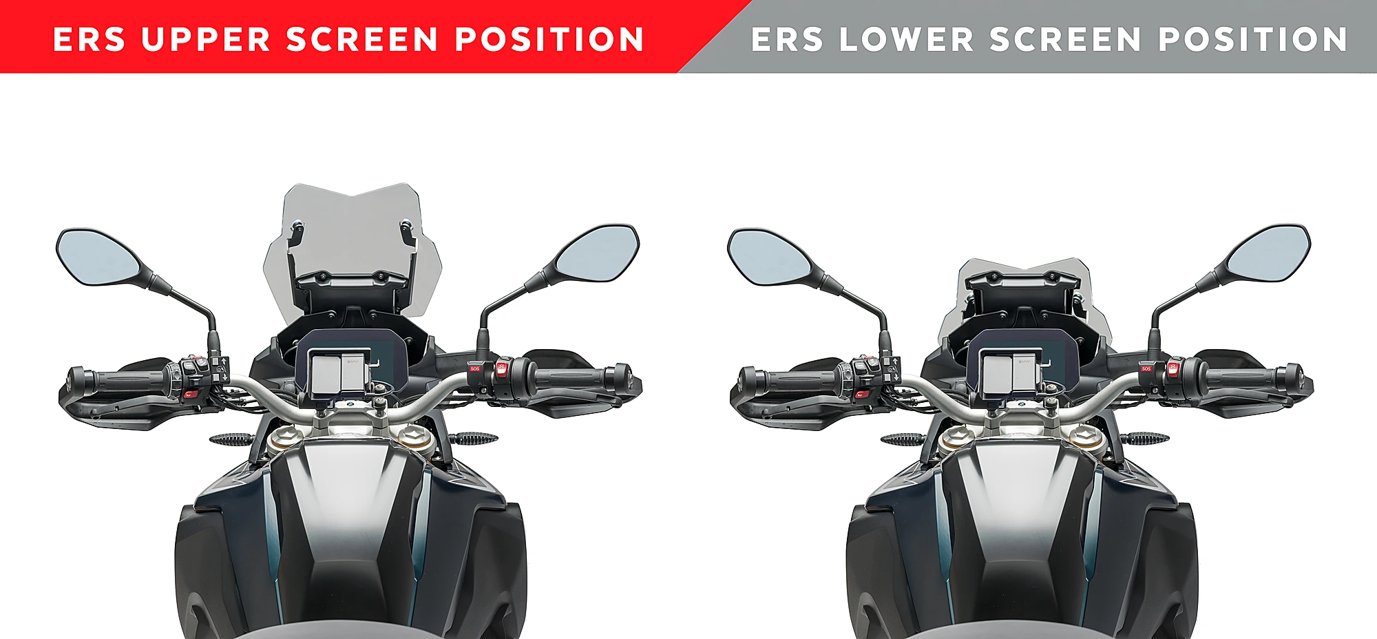 El E.R.S. (Electronic Regulation System) és un mecanisme plug & play que t'ofereix la possibilitat de modificar l'alçada de la pantalla de la teva BMW F750/850 GS en 150 mm per moments en què requereixes una alta protecció com a vies ràpides o condicions climàtiques adverses, o, a contra, disminuir aquesta altura per sota de la pantalla original per conducció en ciutat o off-road.