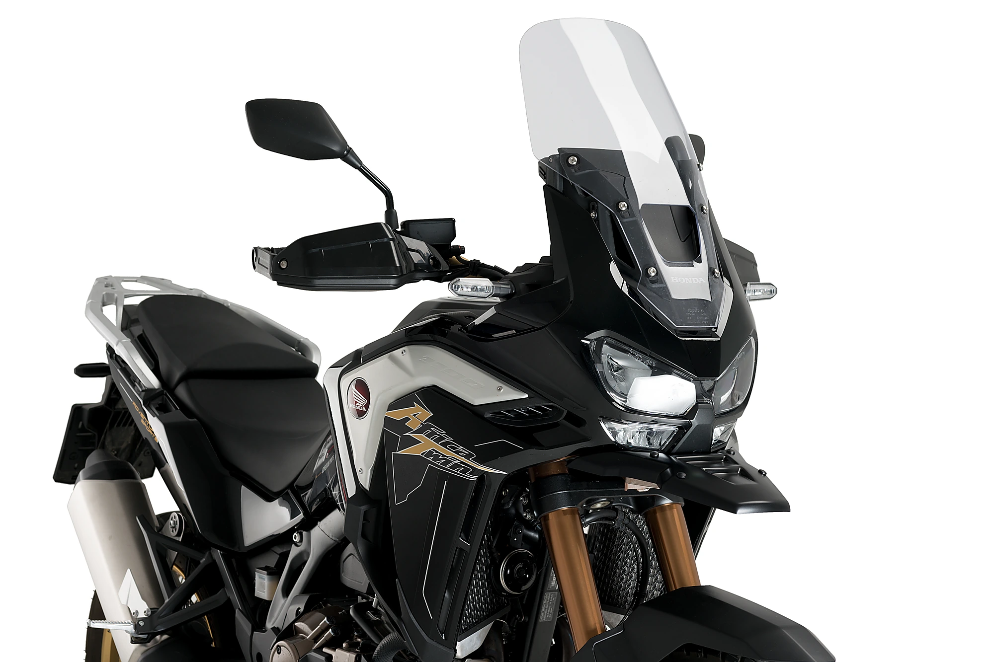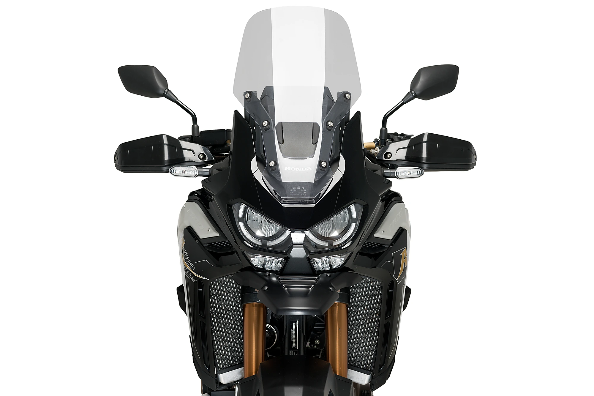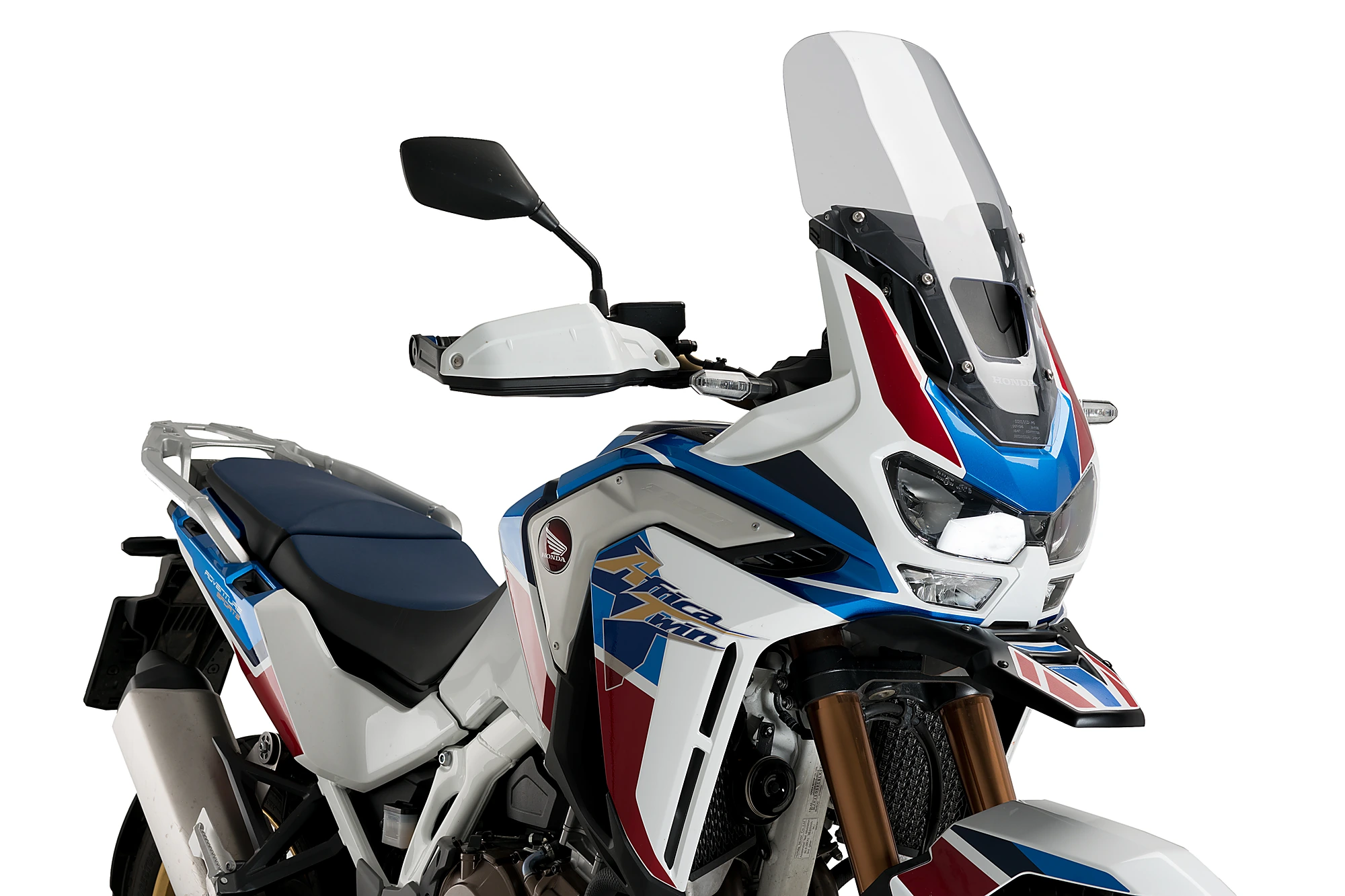 Protegeix el teu trail dels possibles impactes de pedres i fang gràcies a el bec, o parafangs davanter superior, de l'Honda CRF1100L Africa Twin/Adventure Sports. El seu muntatge no només accentuarà el caràcter aventurer de la teva moto, també millorarà la seva seguretat i et permetrà superar qualsevol superfície en mal estat al no haver de preocupar-te dels danys en el far. Les seves línies senzilles i refinades s'adapten a la perfecció al disseny sobri d'aquesta Honda. A més, s'inclou un kit d'adhesius amb els gràfics i decoració icònica de el model: blanc, blau i grana.