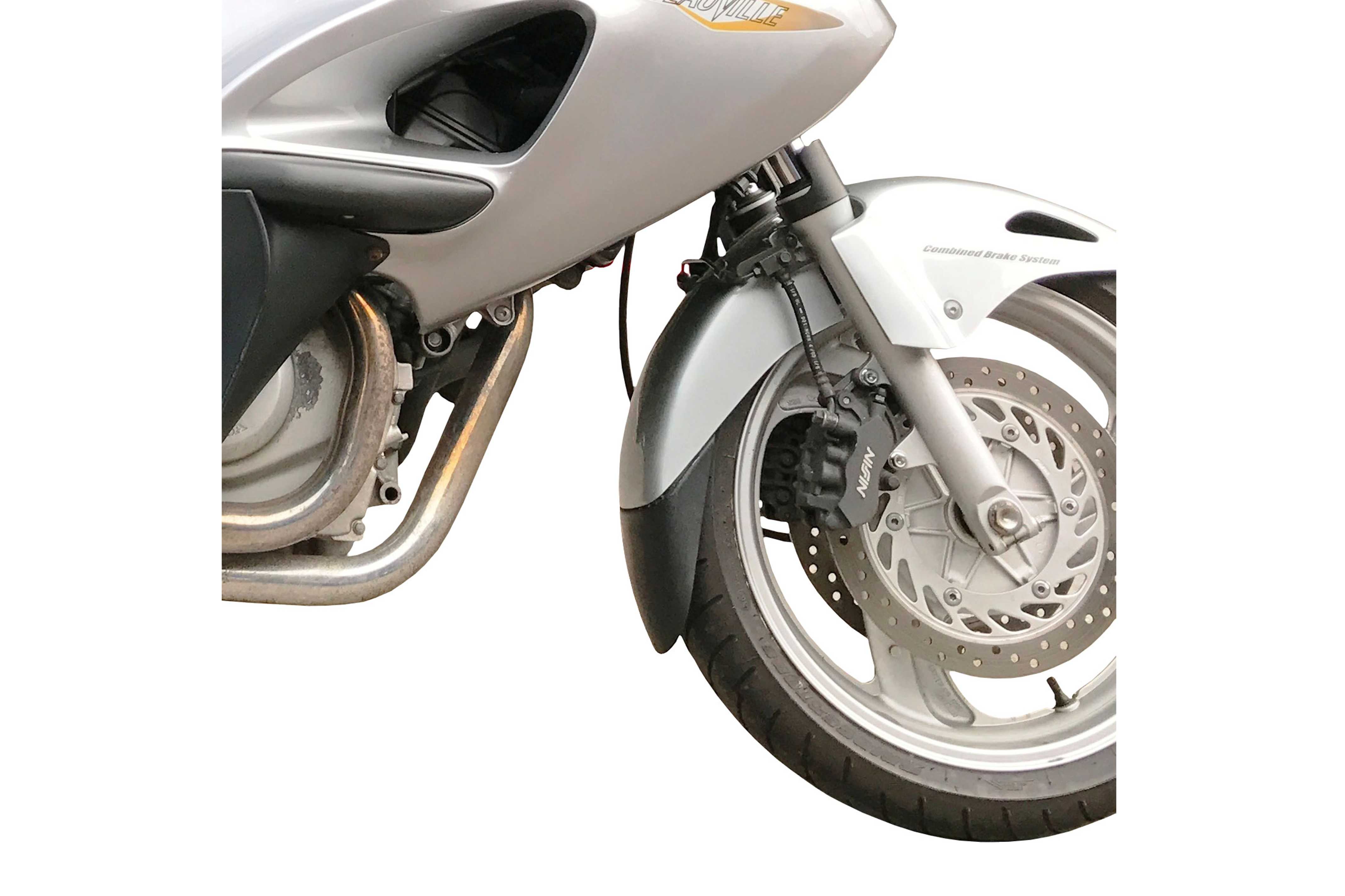 Apórtale major protecció a la teva moto amb el faldó parafangs davanter de Puig. Extensió fabricada en ABS, material altament resistent als impactes, serà la protecció ideal per evitar que al pas de la teva roda pugui saltar qualsevol tipus d'element, impactant conta el cos de la teva moto o directament contra tu. El faldó se serveix en acabat negre per poder adherir-la a l'estètica de la moto sense que aquesta es vegi ressentida.