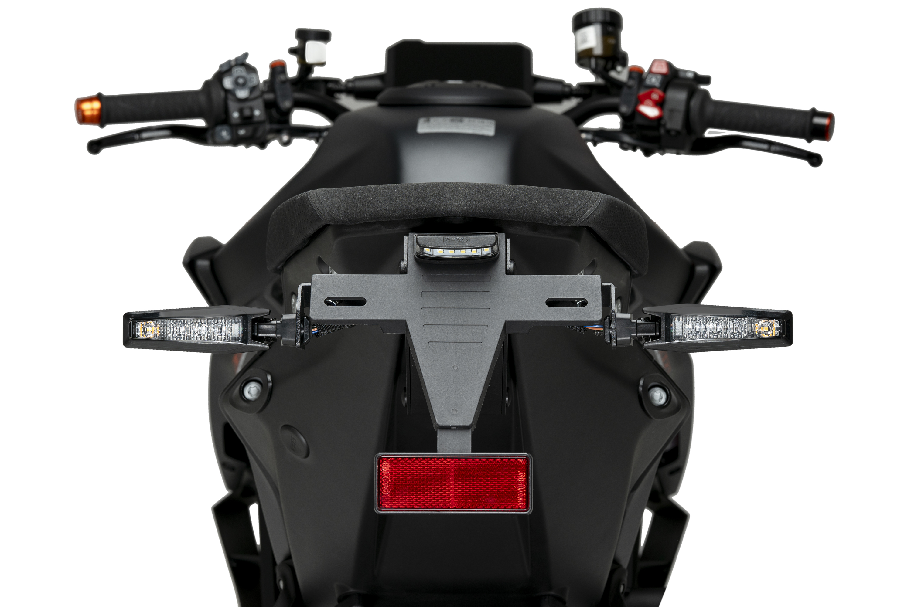 Substitueix el portamatrícules original de la teva moto pel suport portamatrícules de Puig, que, gràcies a la seva ubicació elevada, proporciona un aspecte esportiu a la teva motocicleta. El conjunt combina peces d’acer amb acabat en pintura epoxi i elements de poliamida, aconseguint una notable reducció de pes en comparació amb el suport original.