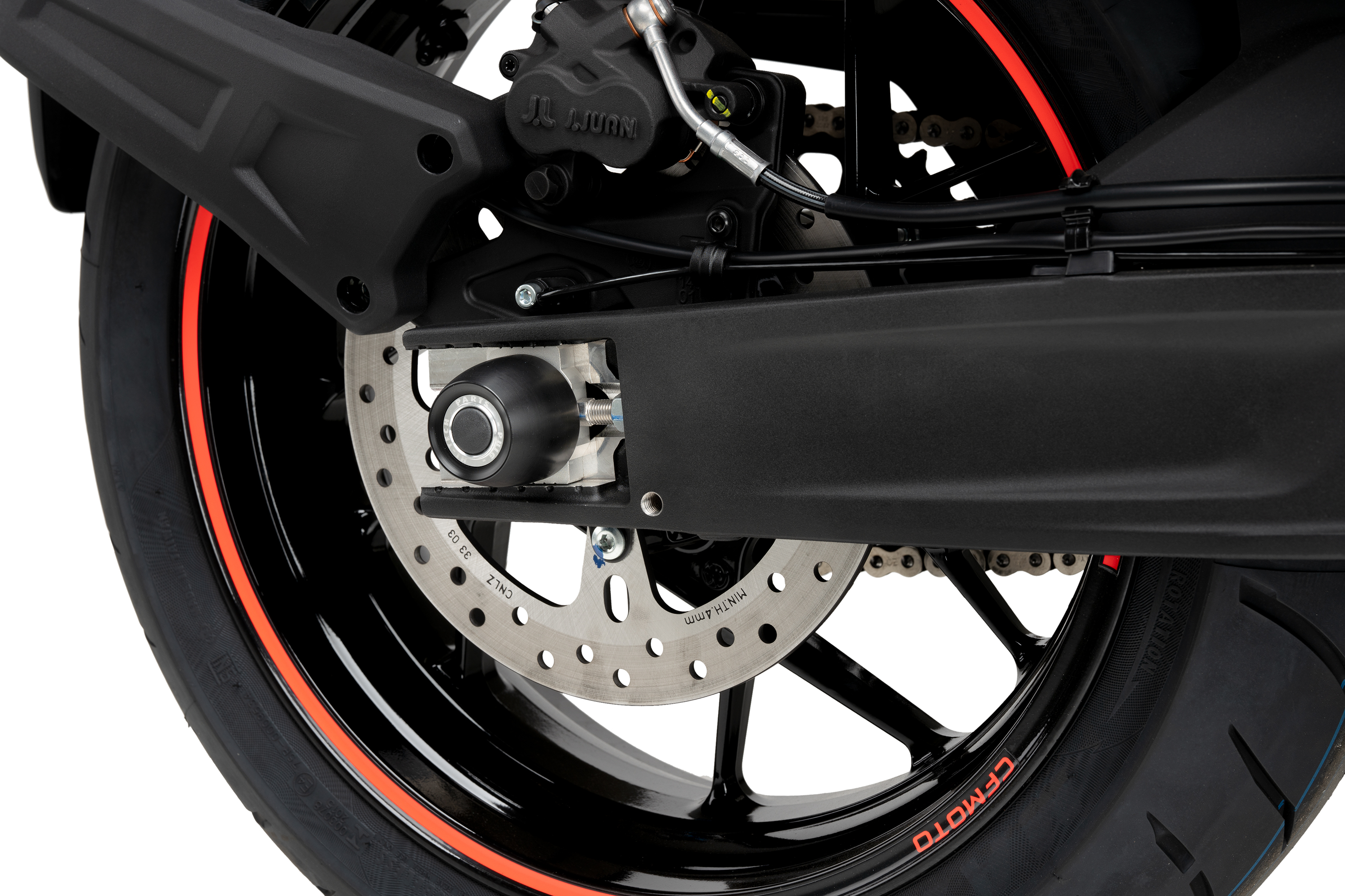 Dota de més protecció al basculant de la teva moto amb el nou protector per Basculant PHB 19 de Puig. Mecanitzat a partir d'un bloc niló amb un pes reduït de 265 gr, aconseguirà protegir una zona delicada de la teva moto i al seu torn reforça la suspensió. A més de la funció protectora, el seu disseny inspirat en l'estil "Racing" mostrarà el veritable caràcter competitiu de la teva moto.
