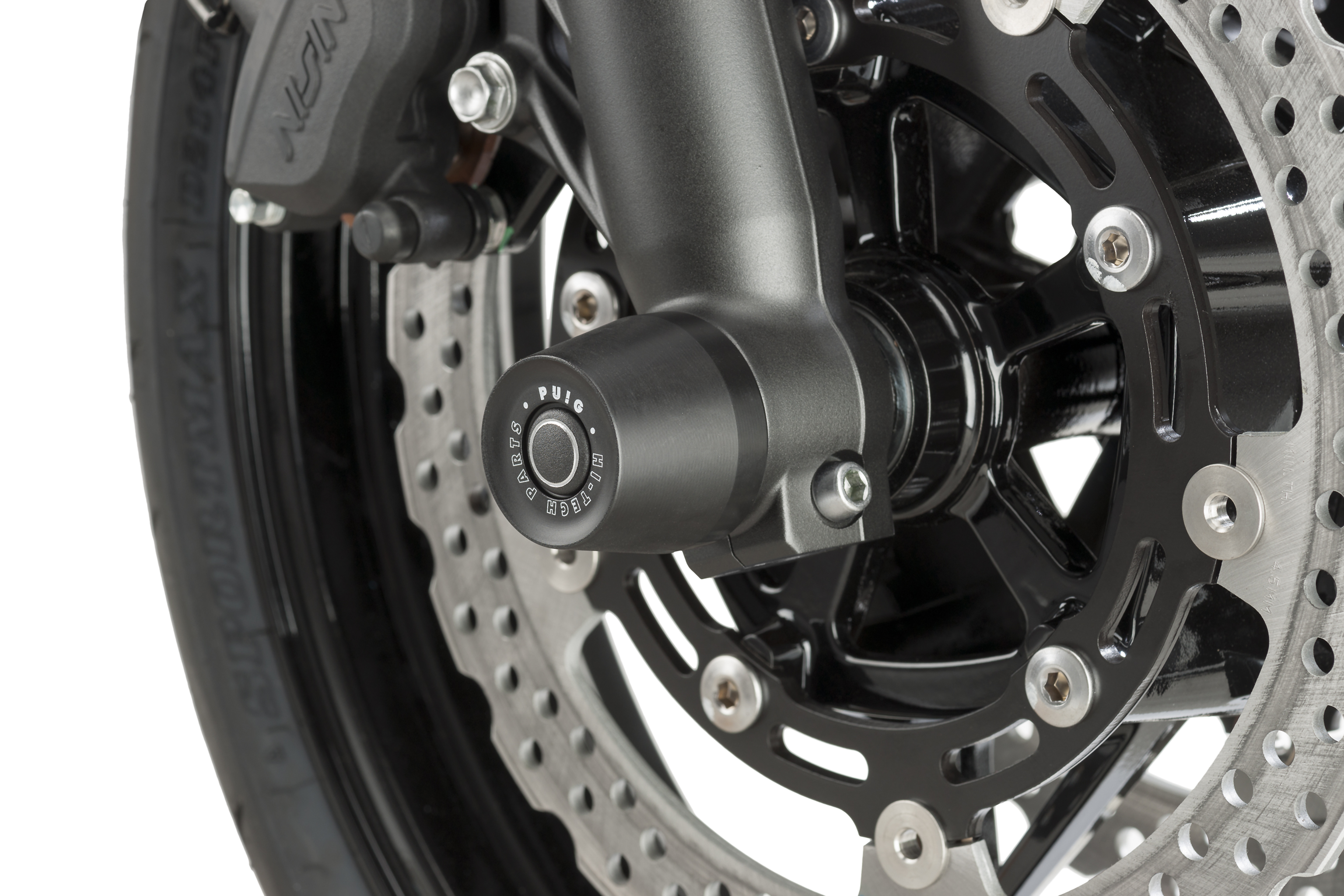 Pràctico i discret amb un disseny més racing per la seva motocicleta. Mecanitzat a partir d'un bloc de nylon. Reduït a 265 grams, protegint les suspensions i el basculant.