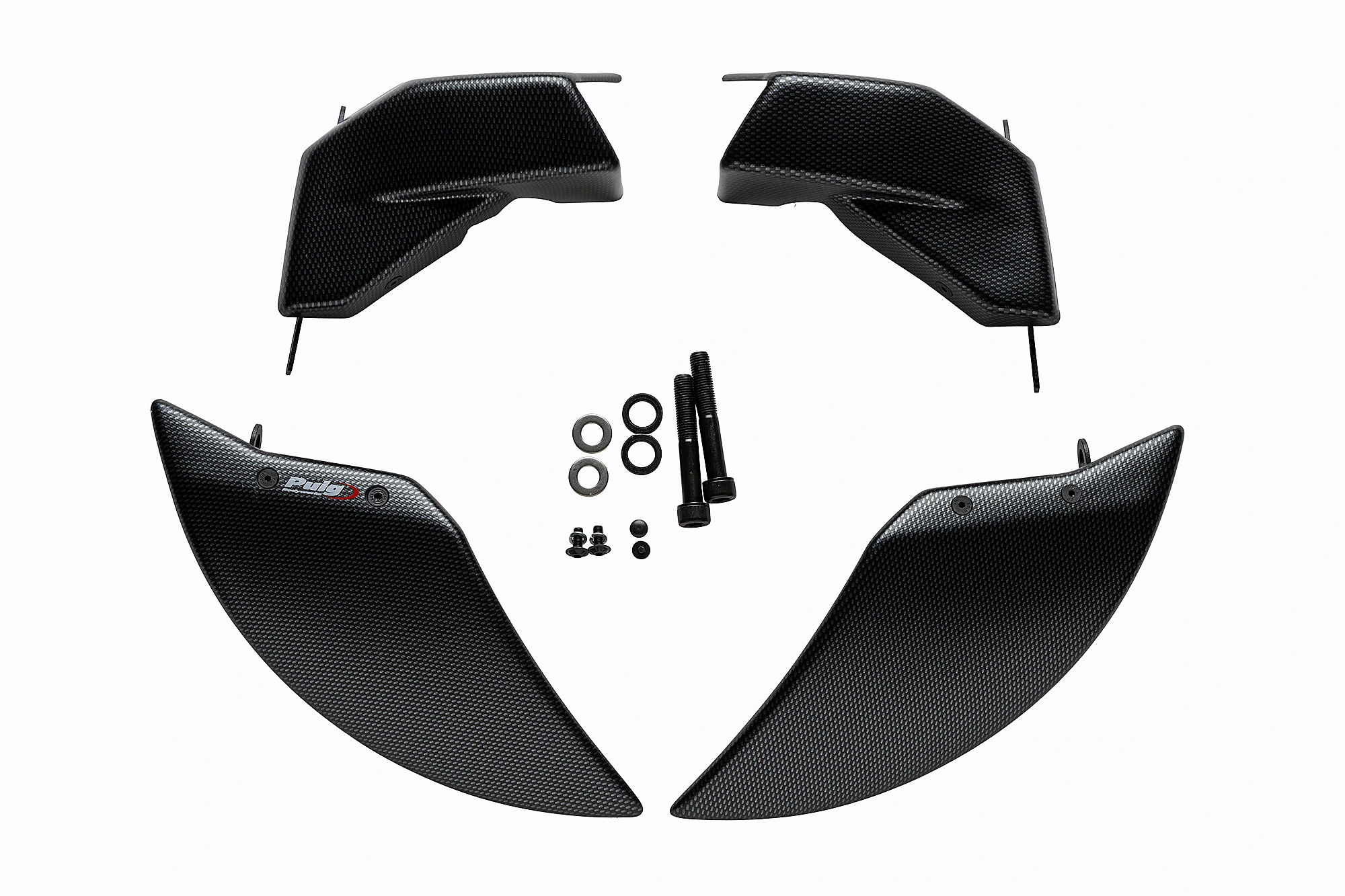 Fabricat amb les tecnologies més innovadores en modelatge de plàstics, el Brake Cooler 2.0 està format per dos conductes de refrigeració que canalitzen l’aire cap a les pinces de fre de manera directa i eficient. Els seus suports d’acer inoxidable, lleugers i resistents, tenen un elegant acabat en negre texturitzat que s’integra perfectament en l’estètica esportiva de la moto.
