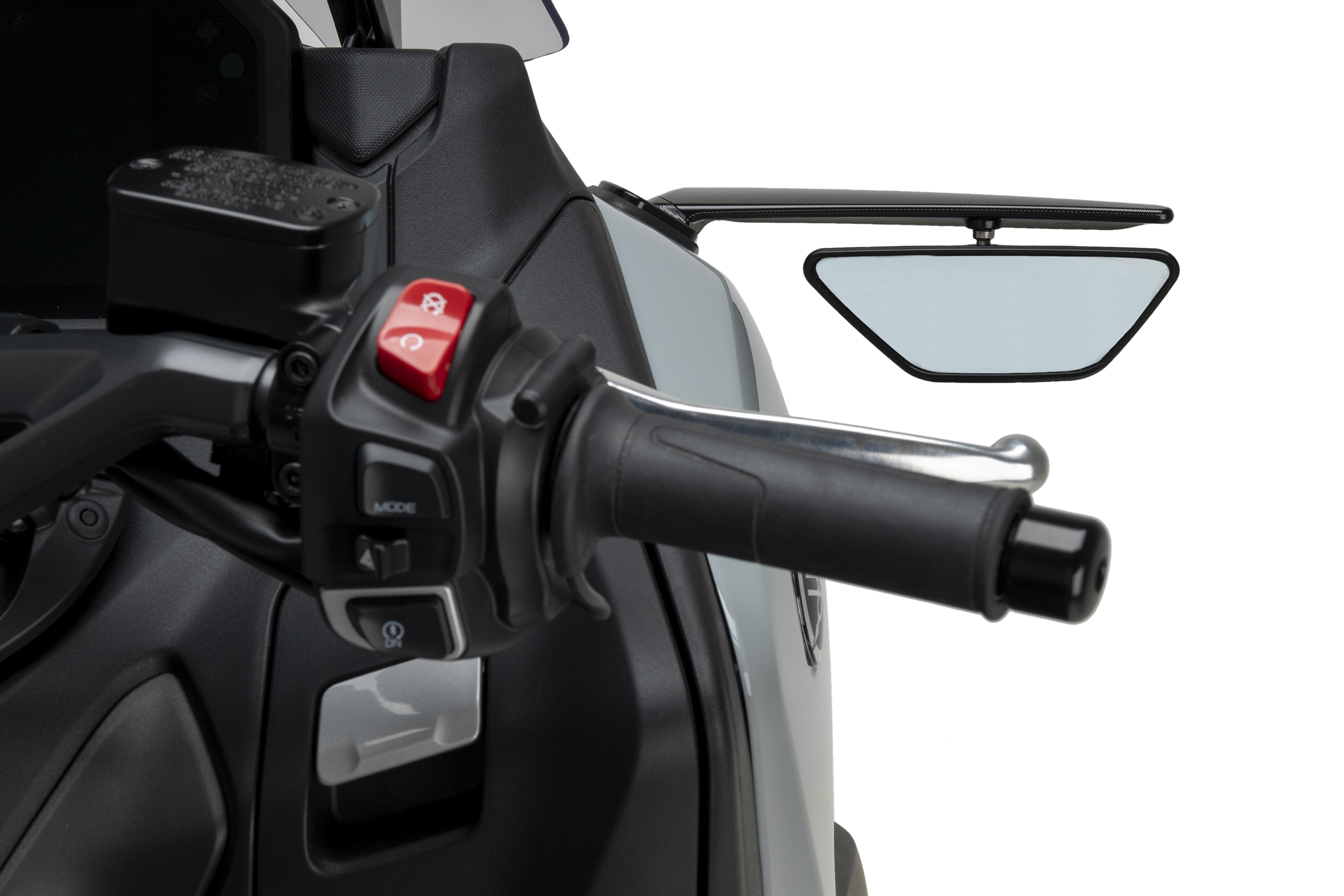 En un complet exercici de disseny, Puig ha aconseguit unir en un mateix producte els avantatges aerodinàmics dels alerons Downforce laterals amb l'eficiència dels retrovisors i l'opció d'instal·lar els intermitents TAB. Tot això en una compacta peça d´atractiva estètica, ideal per personalitzar l´estètica de les motos més esportives.