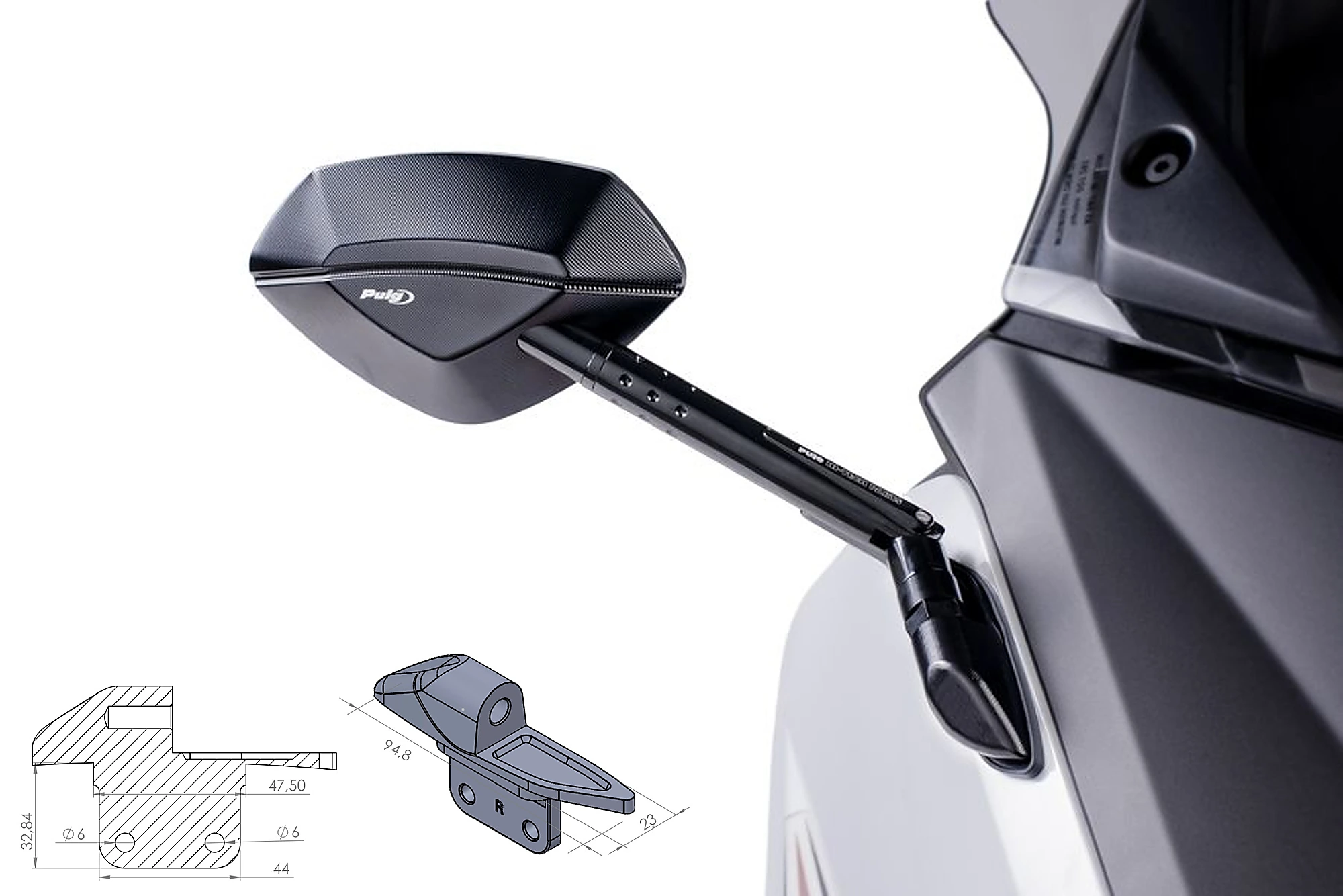 Es tracta de peces dissenyades sota els paràmetres de Hi-Tech parts de Puig, no homologats, són regulables tant en alçada com inclinació gràcies al seu sistema de ròtula "Ball and Socket Joint". A més, seran adaptables a la vareta o al carenat original mitjançant adaptadors.