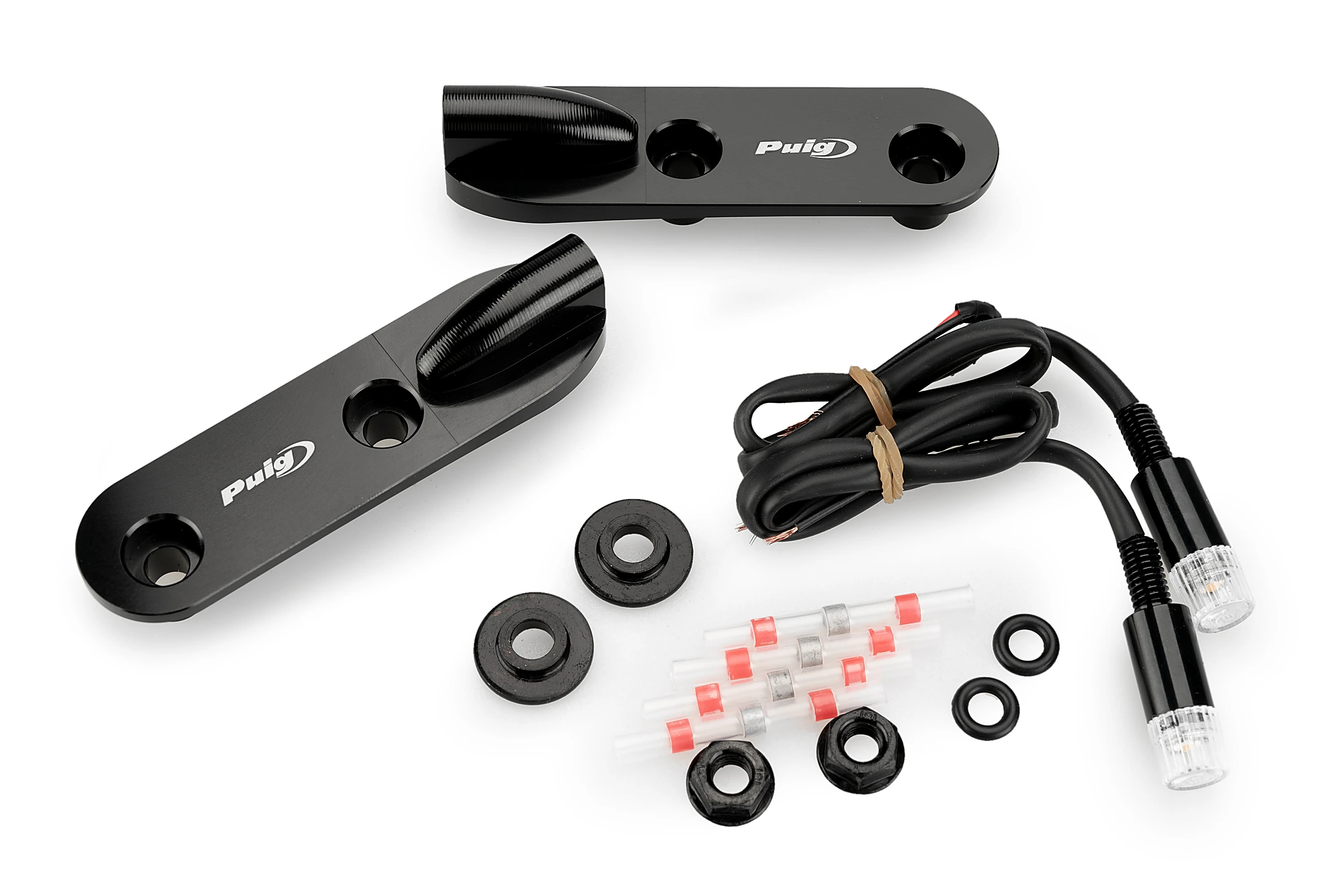 Dissenyat per a motos esportives que incorporen l'intermitent al retrovisor i desitgen muntar els retrovisors al contrapès.