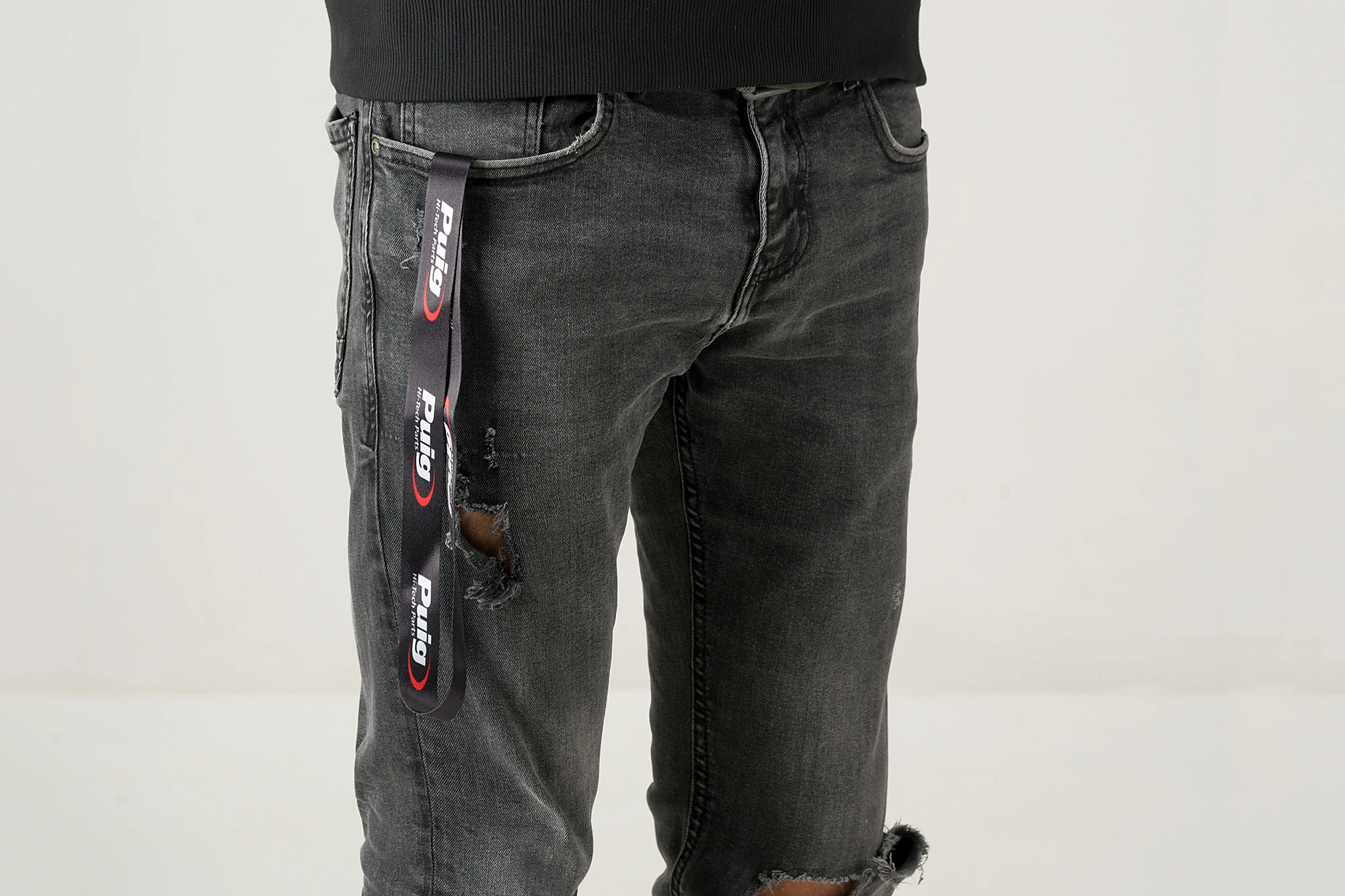 La línia de roba i complements Puig Hi-Tech Parts compta amb dos tipus de clauers, un amb cinta per penjar al coll i un altre amb tancament amb cremallera que permet protegir les claus quan no s'estan utilitzant.