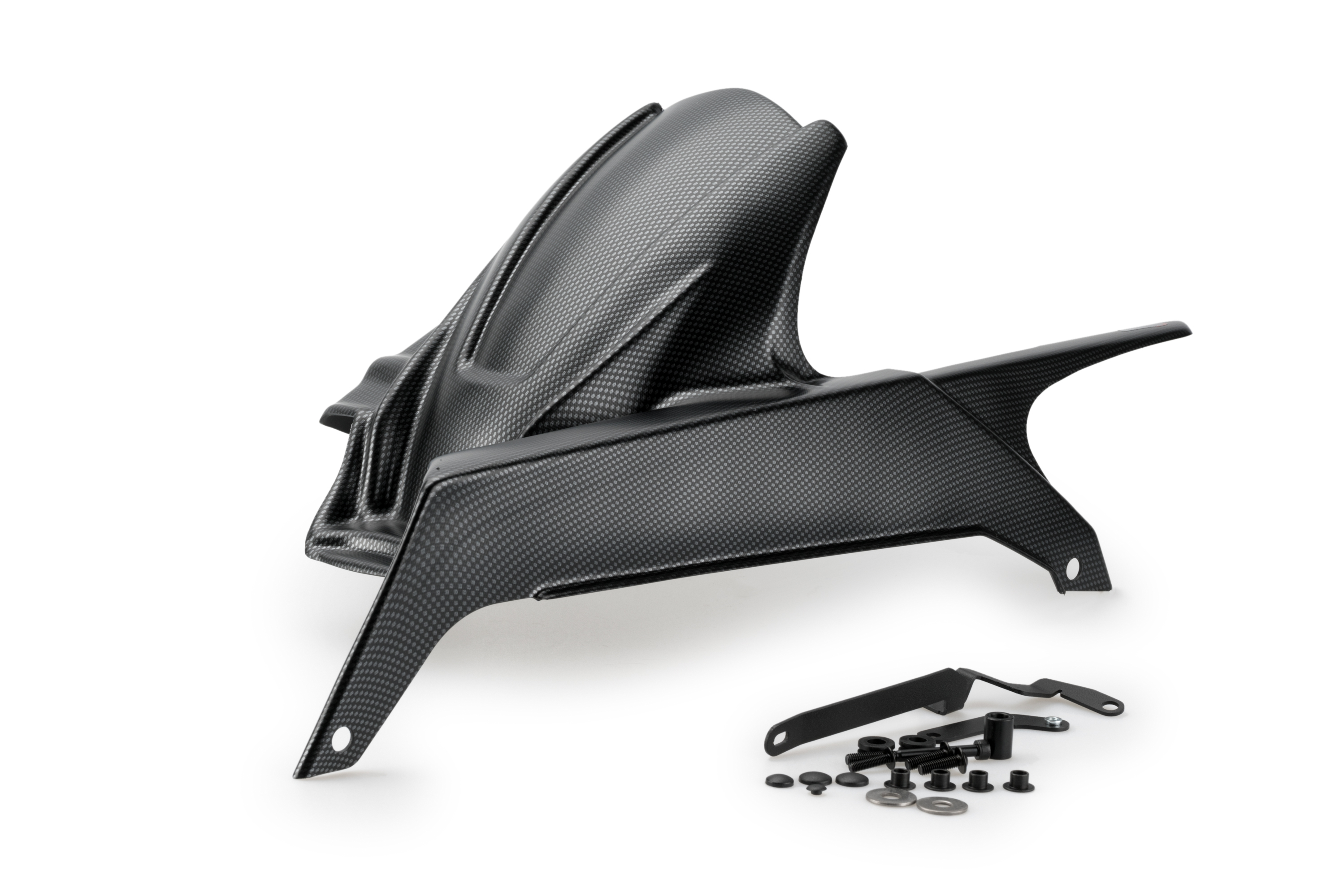 Er enthält eine Stütze, die dem Kotflügel die nötige Steifigkeit verleiht. Seine Montage beeinträchtigt keine wesentlichen Teile des Motorrads.