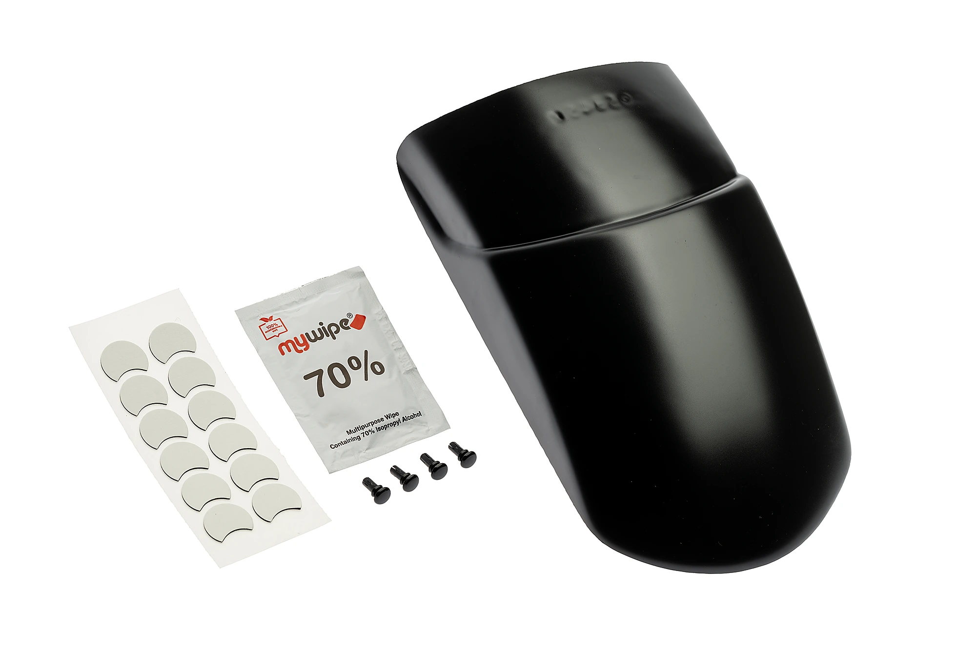 Wird mit den mitgelieferten Klebepads angebracht. Als Option sind auch Nieten für zusätzliche Sicherheit enthalten.