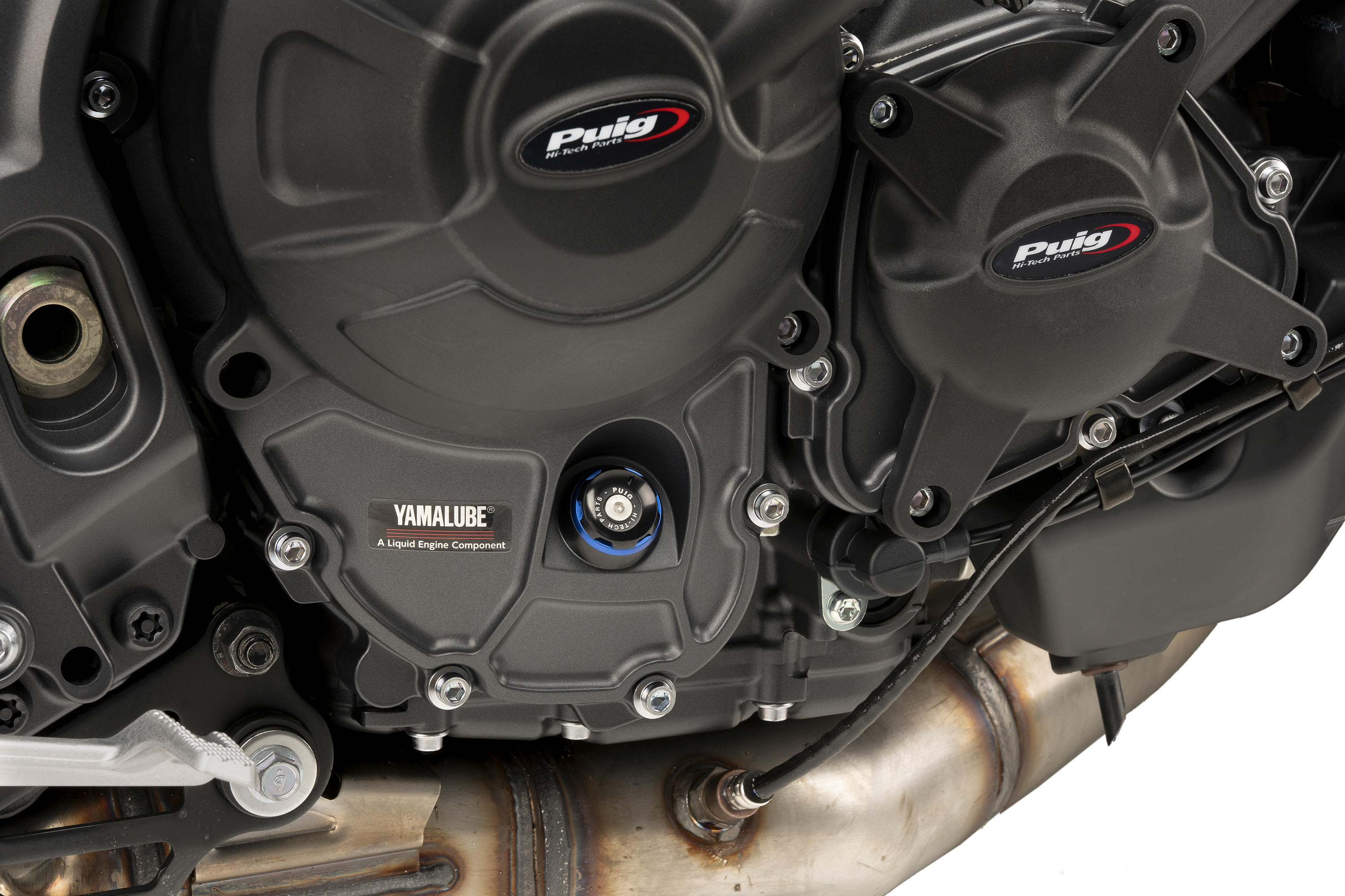 Vom rein funktionalen Originalteil zum Designteil, das sich in der Motorbaugruppe auszeichnet. Der markante Renncharakter wird aufgrund seiner reduzierten Abmessungen und Bearbeitungslinien durch die Eleganz eines schwarz eloxierten Sets und eines farbigen Rings ergänzt, der es ermöglicht, sich in den Rest des Motorrads einzufügen.