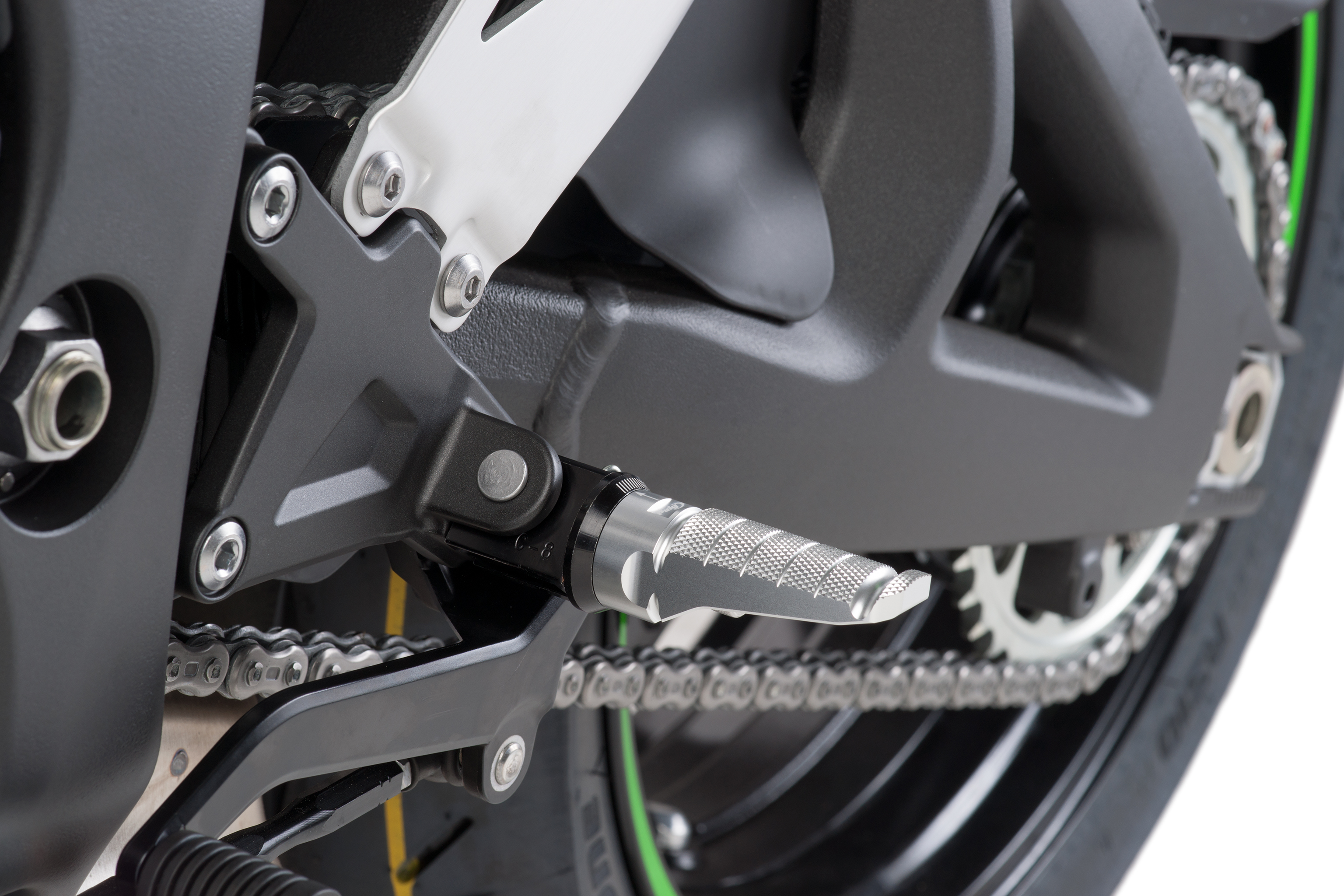 Die Rennfußrasten bieten Fahrern großes Vertrauen in ihre Fahrweise, sowohl im ruhigen Fahren als auch in den Momenten, in denen der Fahrer versucht, an Trackdays oder Rennen die Grenzen zu finden, wenn man maximale Empfindlichkeit in allen Komponenten des Motorrads haben muss.