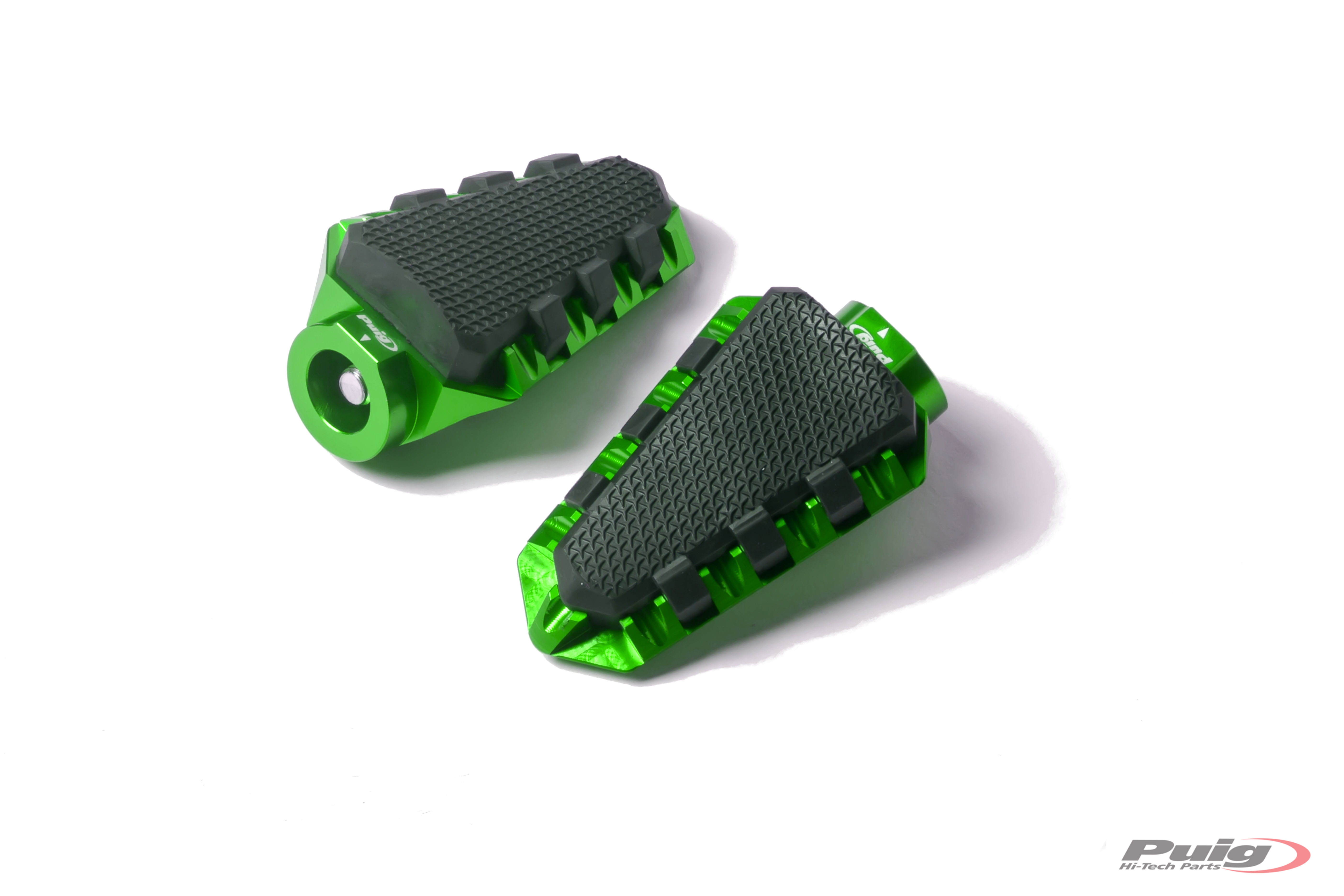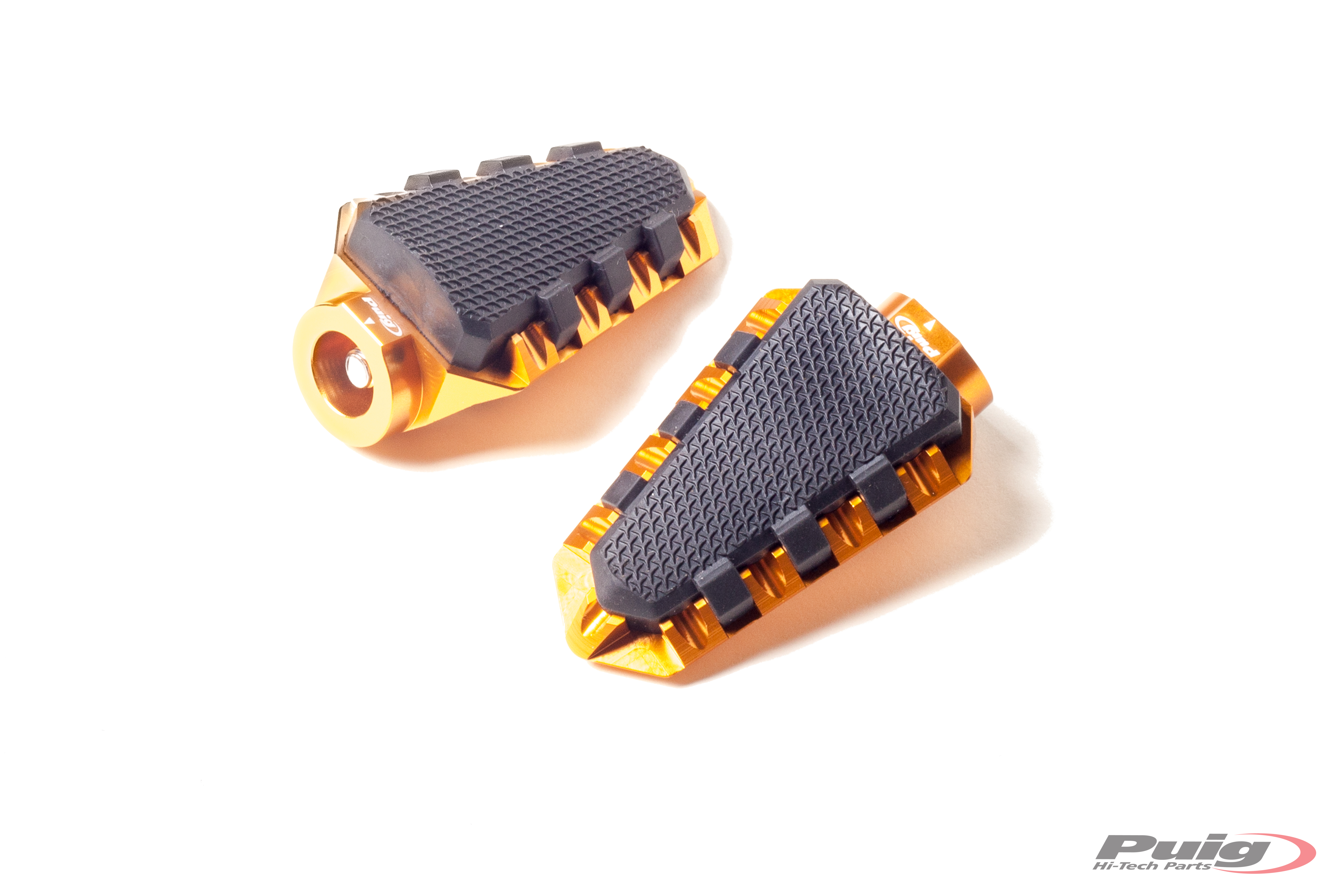 Als Teil des Puig-Tuning-Sortiments sind die Trail-Fußrasten in einer Vielzahl von Farben erhältlich. Der Fahrer kann aus einer Vielzahl von Kombinationen und Farben wählen: Blau, Schwarz, Gold, Silber, Rot, Orange und Grün.