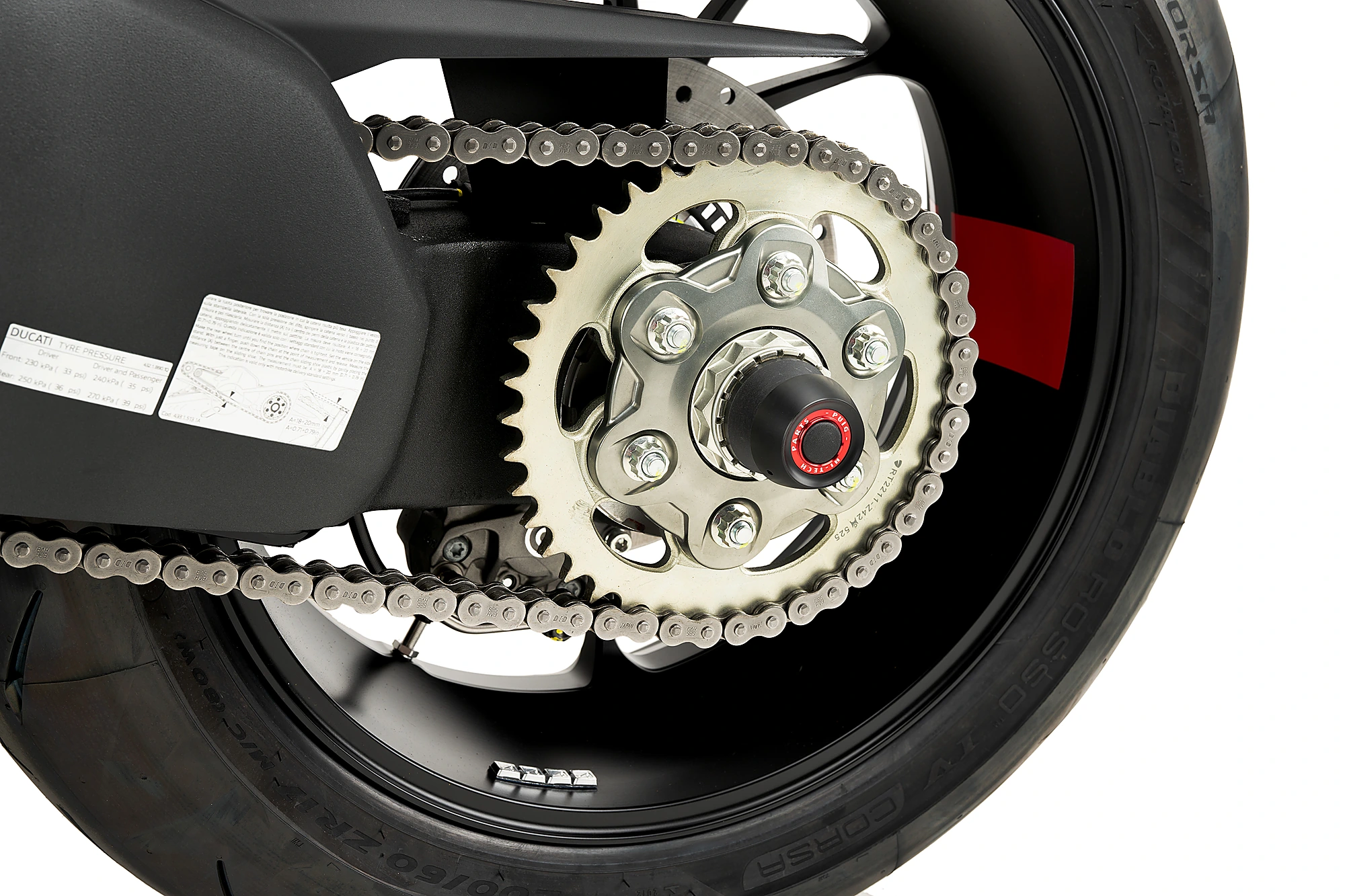 Bieten Sie der Schwinge Ihres Motorrads mehr Schutz mit dem neuen Hinterachsregler PHB 19 von Puig, der aus Nylon mit einem reduzierten Gewicht von 265 g gefertigt ist und diesen empfindlichen Bereich Ihres Motorrads schützt und gleichzeitig die Federung verstärkt. Neben der Schutzfunktion zeigt das vom Stil "Racing" inspirierte Design den echten Rennsportcharakter Ihres Bikes.