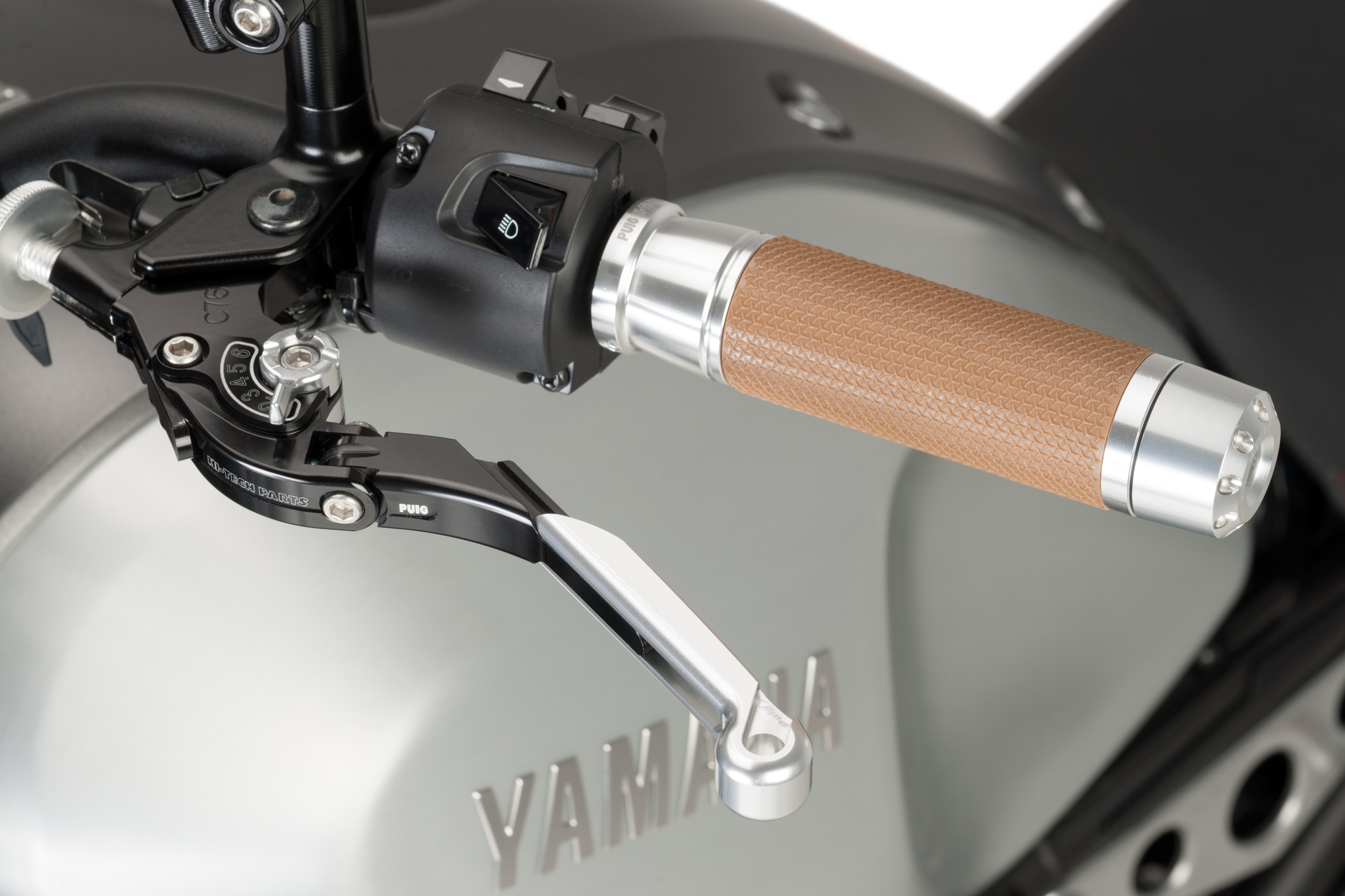 Die Vintage-Griffe von PUIG eignen sich für Lenker mit einem Durchmesser von 22 mm, ihre Länge beträgt 119 mm und sie enthalten auch Adapter für den Bremshebel.