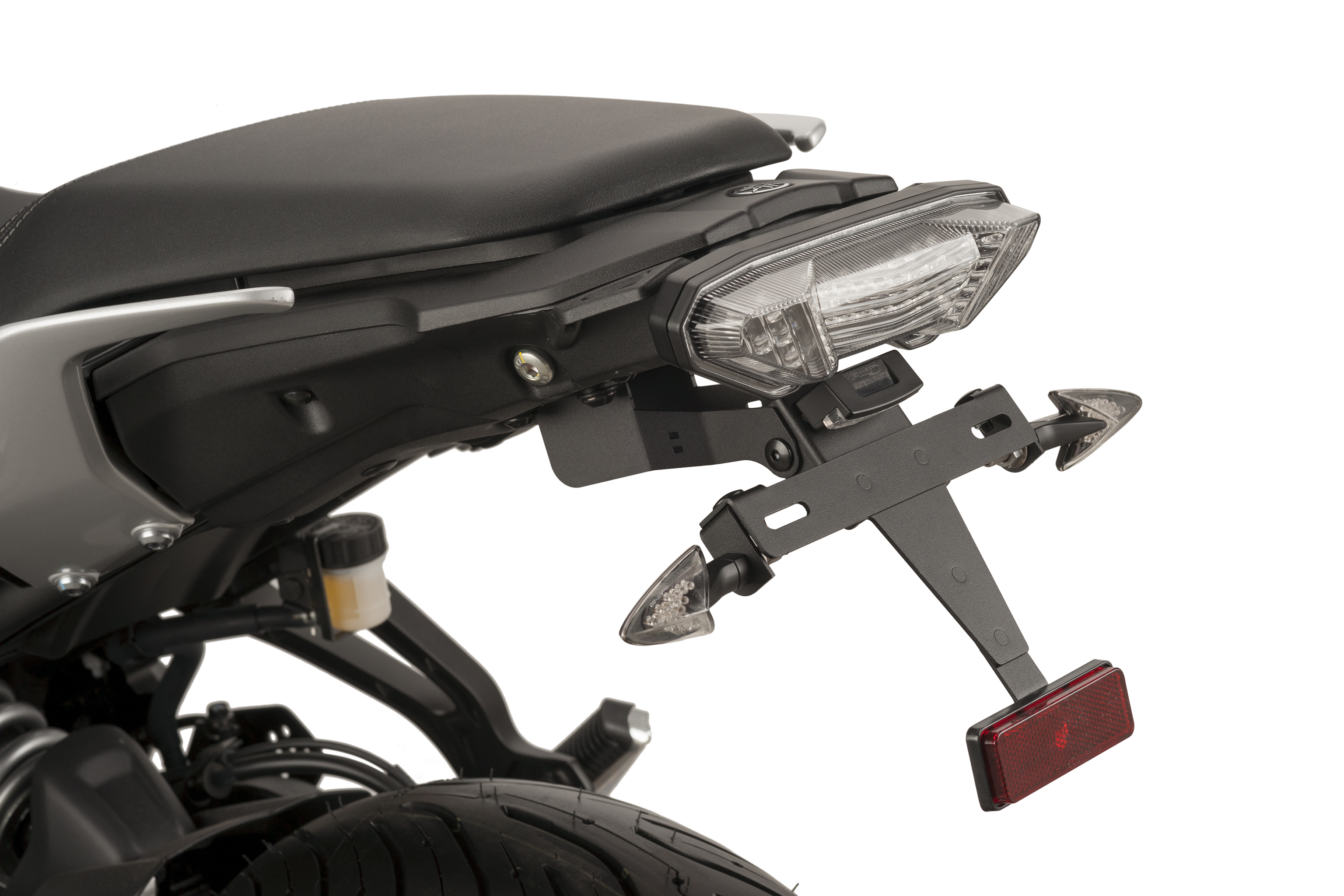 Ersetzen Sie den originalen Kennzeichenhalter Ihres Motorrads durch den Puig-Kennzeichenhalter, der dank seiner erhöhten Position Ihrem Motorrad eine sportliche Optik verleiht. Das Set kombiniert Stahlteile mit einer Epoxid-Lackierung und Polyamid-Elementen und erreicht so eine deutliche Gewichtsreduzierung im Vergleich zum Originalhalter.