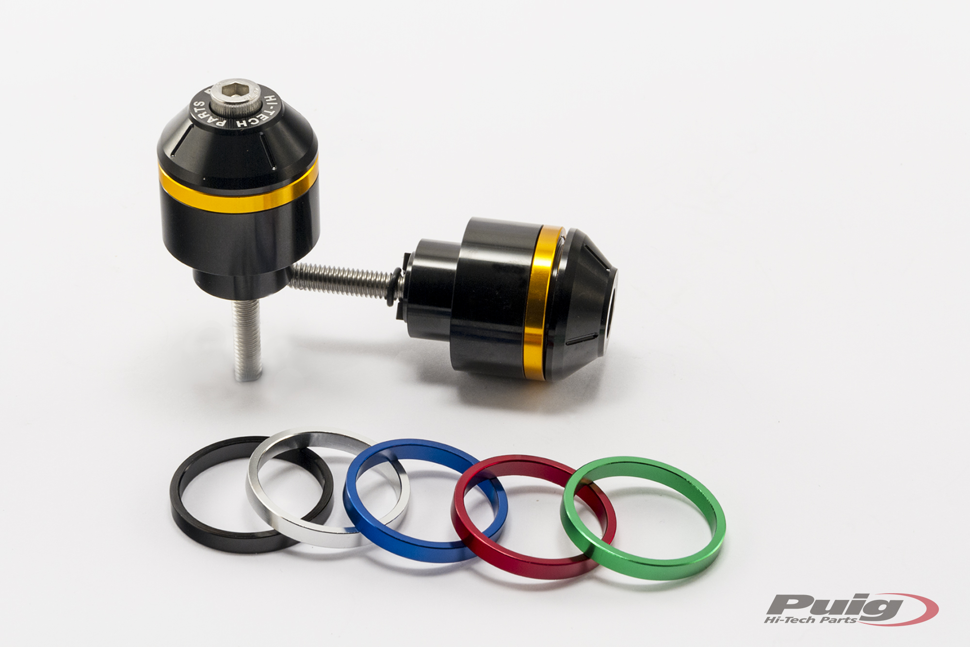 Das Modell ist aus Billetaluminium gefertigt (nur 58 g schwer und 30 mm lang), mit der Besonderheit, dass ein Rand in die Enden eingebettet ist, der dem Gegengewicht mit einer schwarzen Oberfläche einen Hauch Farbe verleiht. Was die Ringe betrifft, bietet PUIG ein Set mit insgesamt 10 Ringen (2 pro Farbe) an, um das Motorrad nach Ihren Wünschen zu gestalten. Es beinhaltet die Farben: Schwarz, Blau, Rot, Silber und Gold. Wenn Sie die grüne Farbe wünschen, diese wird nur als Referenz Ref.8498N (Kawasaki und universal) verwendet. Es ist zu beachten, dass die Gegengewichte paarweise angeboten werden. Im Bereich der Ersatzteile bietet PUIG auch die Möglichkeit, die Ringe der Lenkerendgewichte allein zu erwerben.