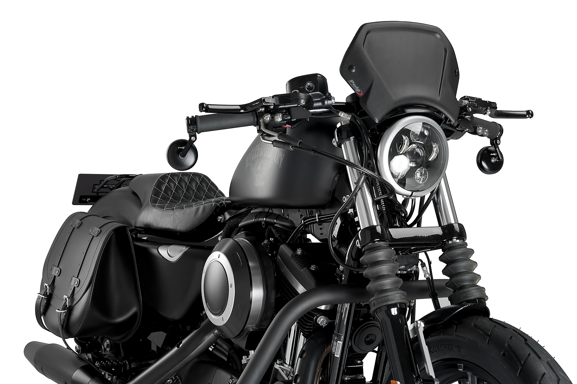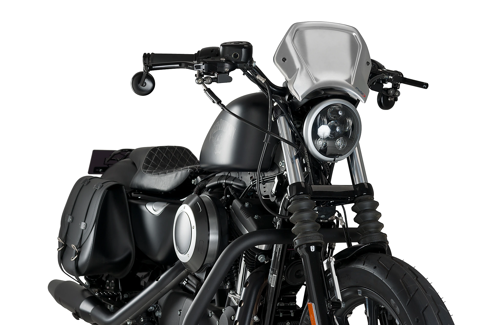 Was die Montage betrifft, so verfügt die Puig Aluminium-Frontplatte über zwei Befestigungspunkte und eine universelle Eisenstütze. Puig hat auch spezielle Halterungen, sofern Sie diese für Ihr Motorradmodell benötigen.