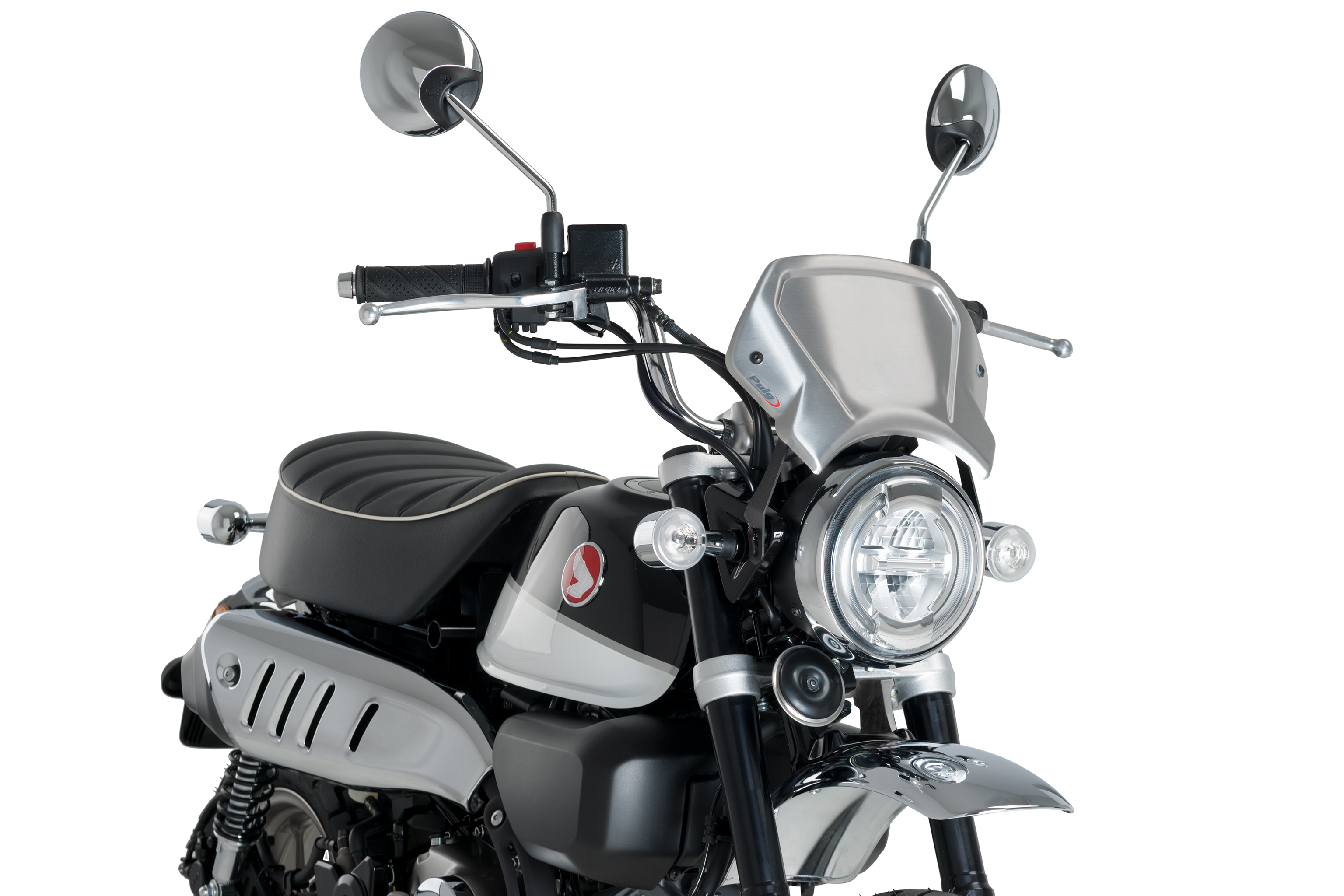 Was die Montage betrifft, so verfügt die Puig Aluminium-Frontplatte über zwei Befestigungspunkte und eine universelle Eisenstütze. Puig hat auch spezielle Halterungen, sofern Sie diese für Ihr Motorradmodell benötigen.