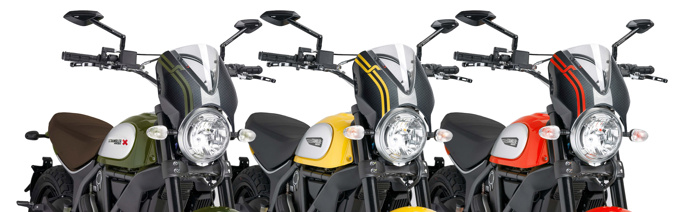 Verkleidung Carbon Look. Ein Aufkleber-Set in verschiedenen Farben wird mitgeliefert, um Ihren SCRAMBLER individuell anzupassen.