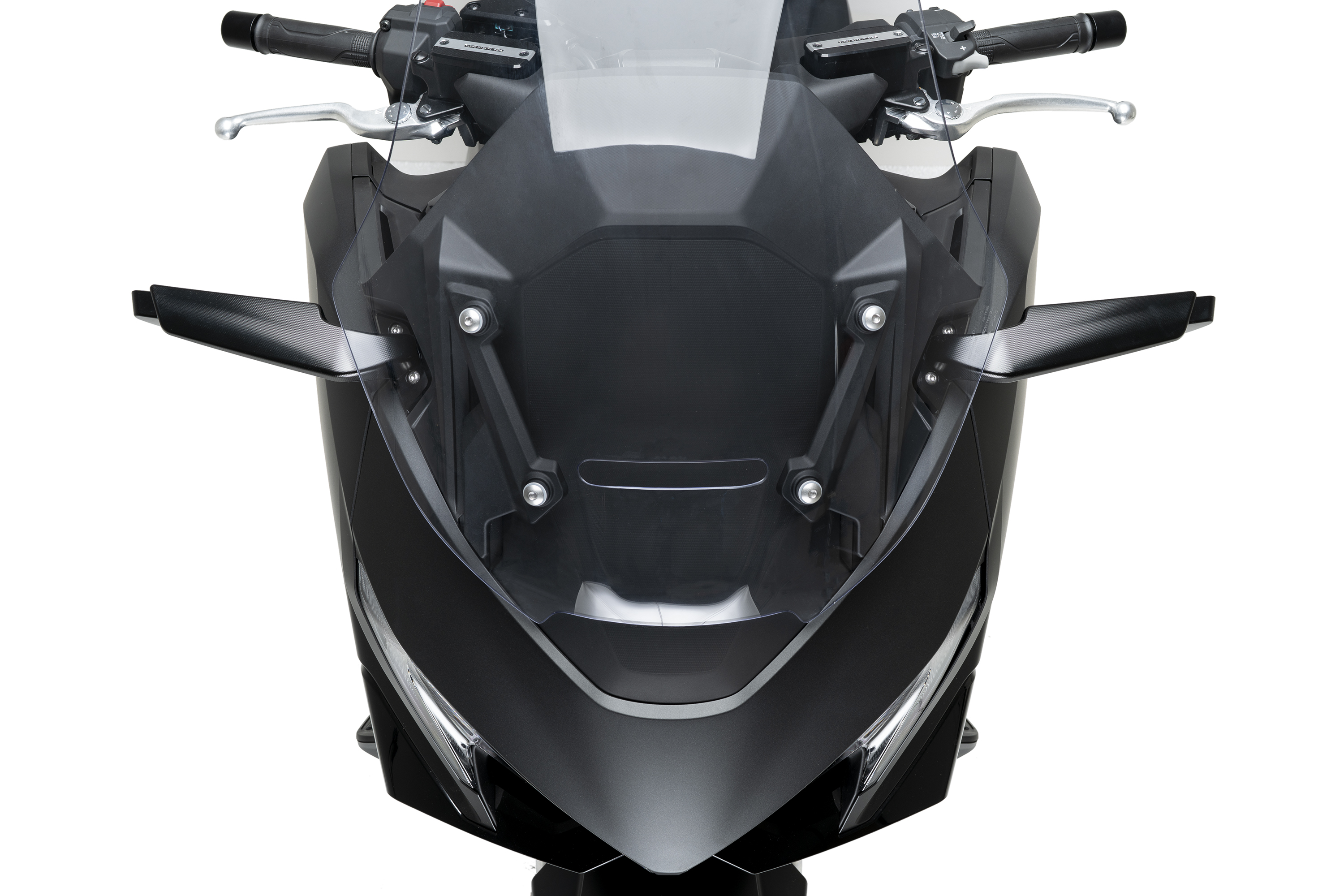 Der Spoiler-Spiegel wurde mit virtueller Windkanal-Technologie entwickelt, dank Puigs umfangreicher Erfahrung in Top-Wettbewerben wie dem MotoGP und SBK-Weltmeisterschaften, inspiriert von den neuesten Fortschritten auf dem Gebiet der Aerodynamik. Es ist aus einem Aluminiumblock gefräst und weist eine elegante schwarze Eloxierung für ein großartiges Finish auf.