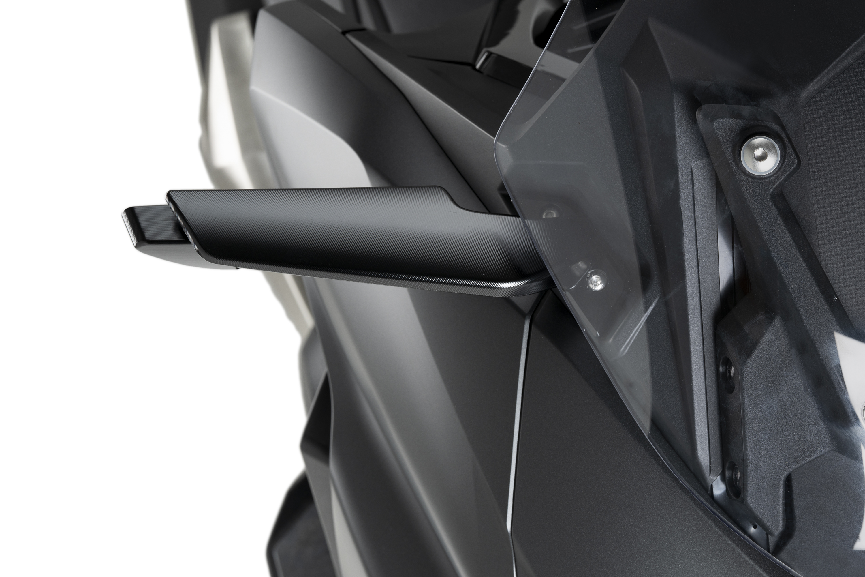 In einer umfassenden Designübung ist es Puig gelungen, die aerodynamischen Vorteile der Downforce-Seitenspoiler mit der Effizienz seiner Spiegel und der Möglichkeit des Einbaus von Tab-Blinkern in einem einzigen Produkt zu vereinen. All dies in einem kompakten Teil mit attraktiver Ästhetik, ideal für die individuelle optische Gestaltung der sportlichsten Motorräder.