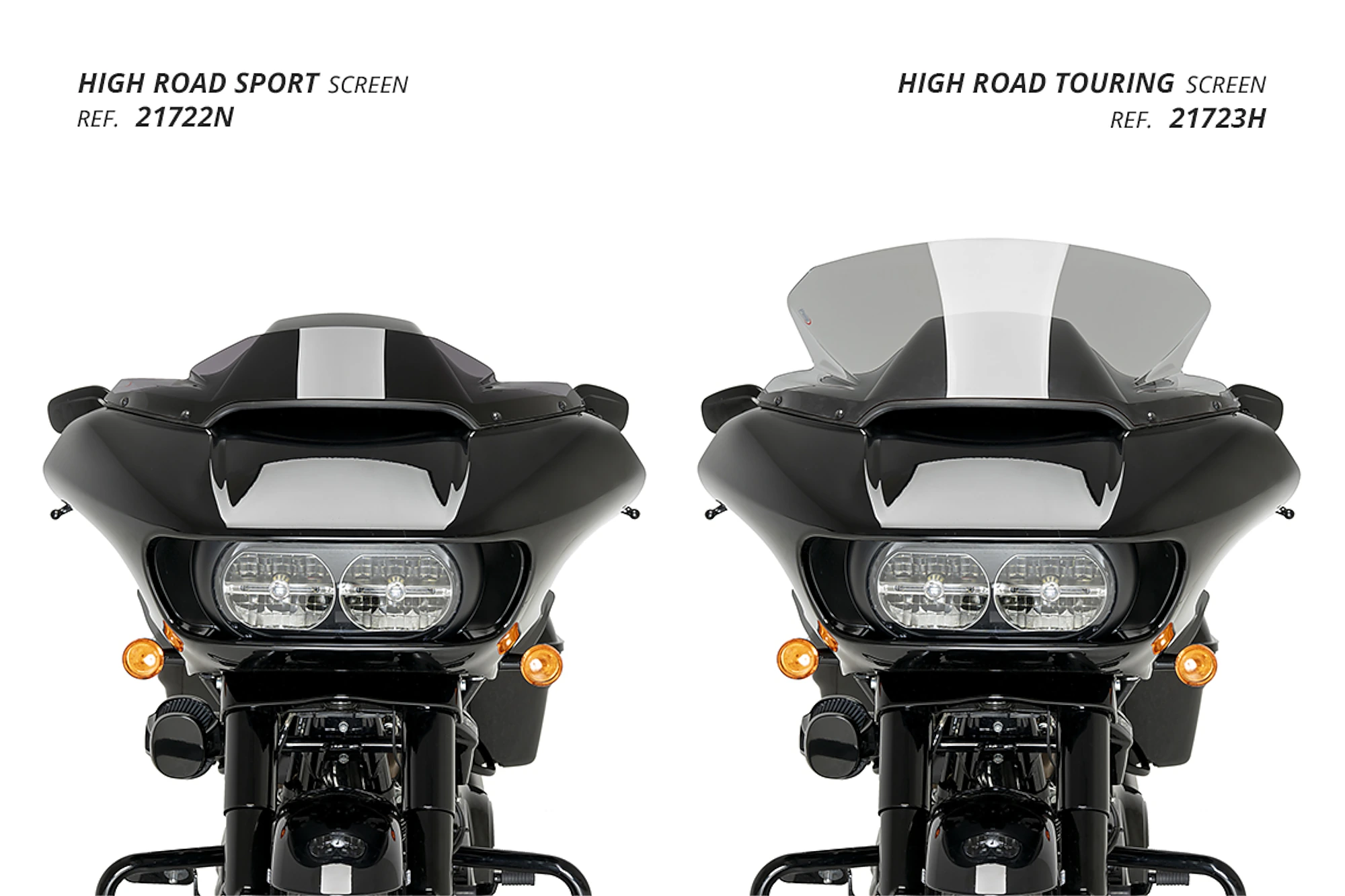 Die beiden Versionen der Puig High-Road Scheibe ersetzen die Originale von Harley Davidson und werden daher mit denselben Schrauben befestigt, bieten jedoch je nach Modell Besonderheiten. Die Touring-Scheibe hat Seitenteile, die so gestaltet sind, dass sie die Luft, die in den Schulterbereich gelangt, besser ablenken, um einen störenden Luftstrom für den Fahrer zu vermeiden.