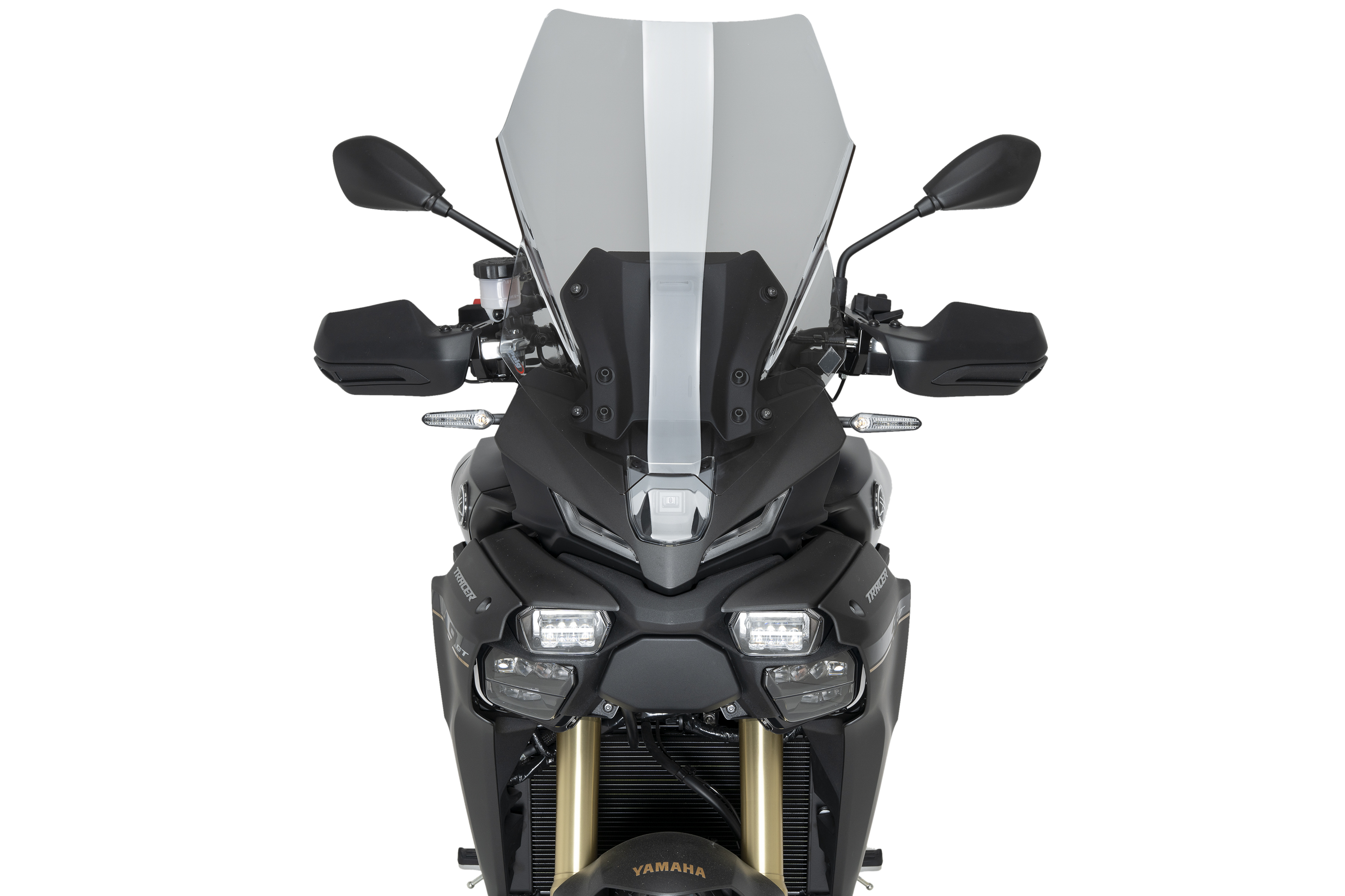 Die von Puig in Barcelona hergestellten Touringscheiben wurden mit dem Ziel entwickelt, den Fahrer aerodynamisch zu schützen, ohne seine Sicht auf den gelände zu beeinträchtigen. Darüber hinaus passen diese Scheiben dank ihrer großen Farbpalette und unterschiedlichen Größen perfekt zum Abenteuerstil und zur Ästhetik der Trail-Modelle.
