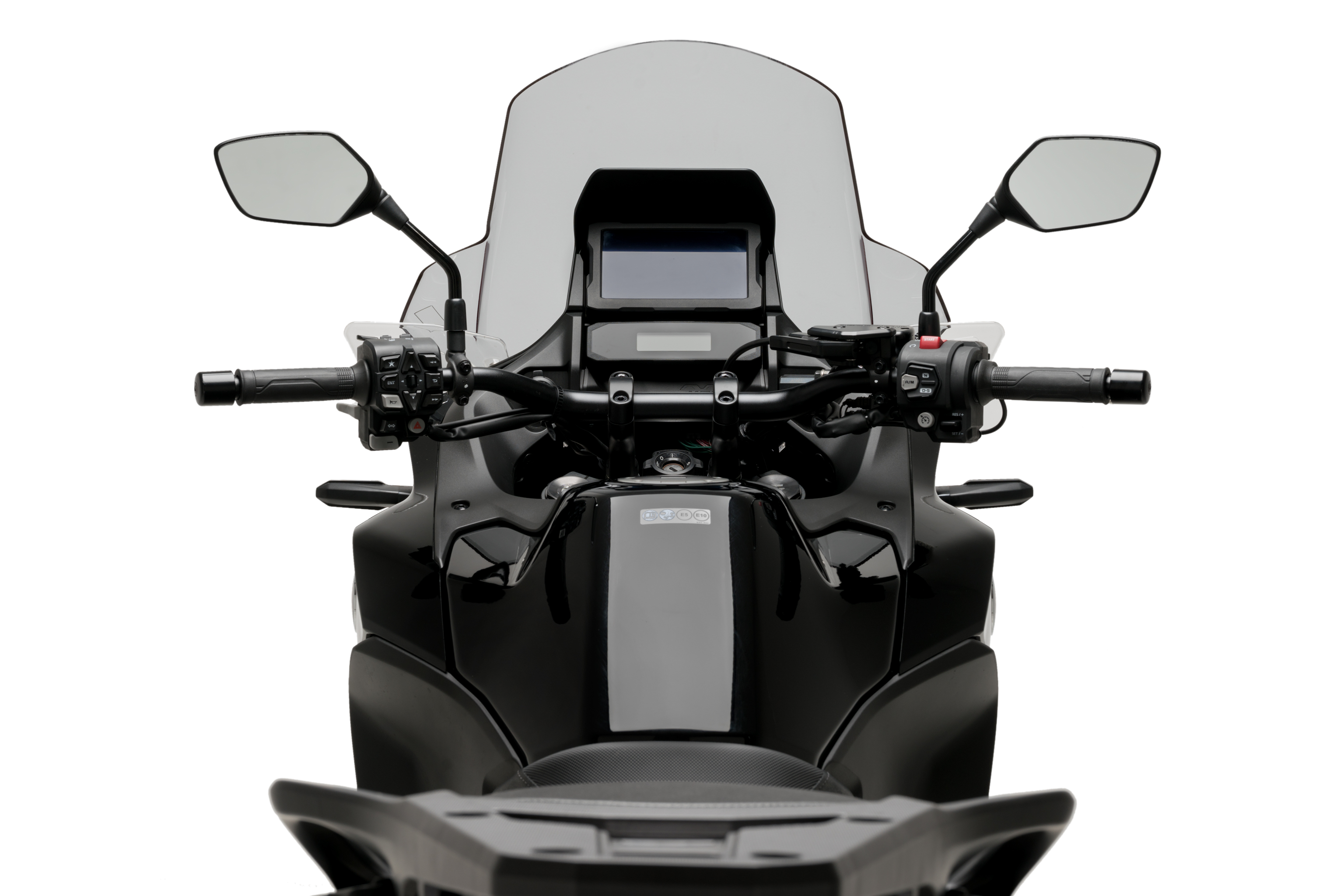 Die von Puig in Barcelona hergestellten Touringscheiben wurden mit dem Ziel entwickelt, den Fahrer aerodynamisch zu schützen, ohne seine Sicht auf den gelände zu beeinträchtigen. Darüber hinaus passen diese Scheiben dank ihrer großen Farbpalette und unterschiedlichen Größen perfekt zum Abenteuerstil und zur Ästhetik der Trail-Modelle.