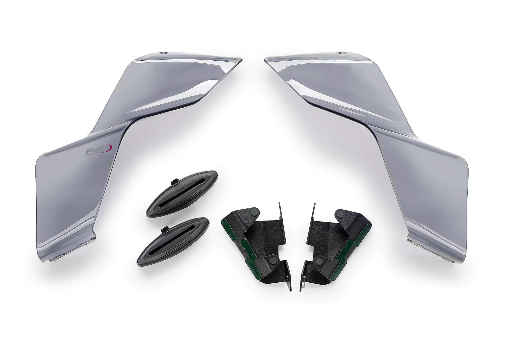 Die GP-Spoiler von Puig werden komplett in Barcelona mit modernster Technologie und dem Wissen der Moto GP- und Superbike-Teams entwickelt und hergestellt. Sie bestehen aus hochwertigem PMMA mit einer Dicke von 4 mm. Ein UV-beständiges Material mit hoher aerodynamischer Kapazität. Das Teil entspricht den strengsten europäischen Sicherheitsvorschriften und hat eine abgerundete Kante mit einem Radius von 2 mm, um die Sicherheit des Fahrers zu gewährleisten.