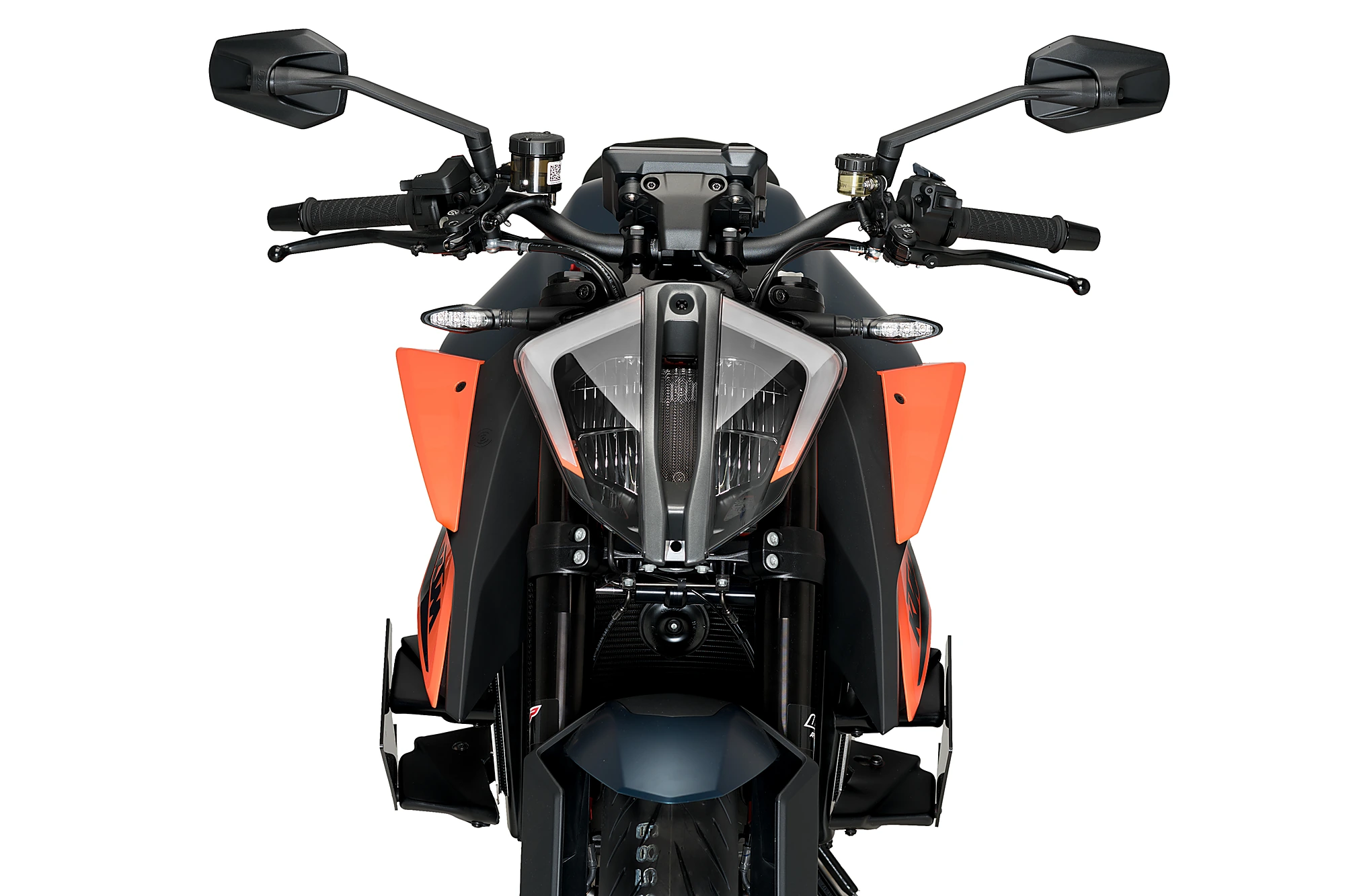 Die Naked Spoiler sind eine Adaption der neusten Innovationen der im Rennbereich erprobten Spoiler. Erporobt in den Bereichen der Aerodynamik, an einer Handelsüblichen KTM Superduke R. Wodurch diese bessere Leistungen erzielen kann, und einen unvergleichlichen Sportstil bekommt.