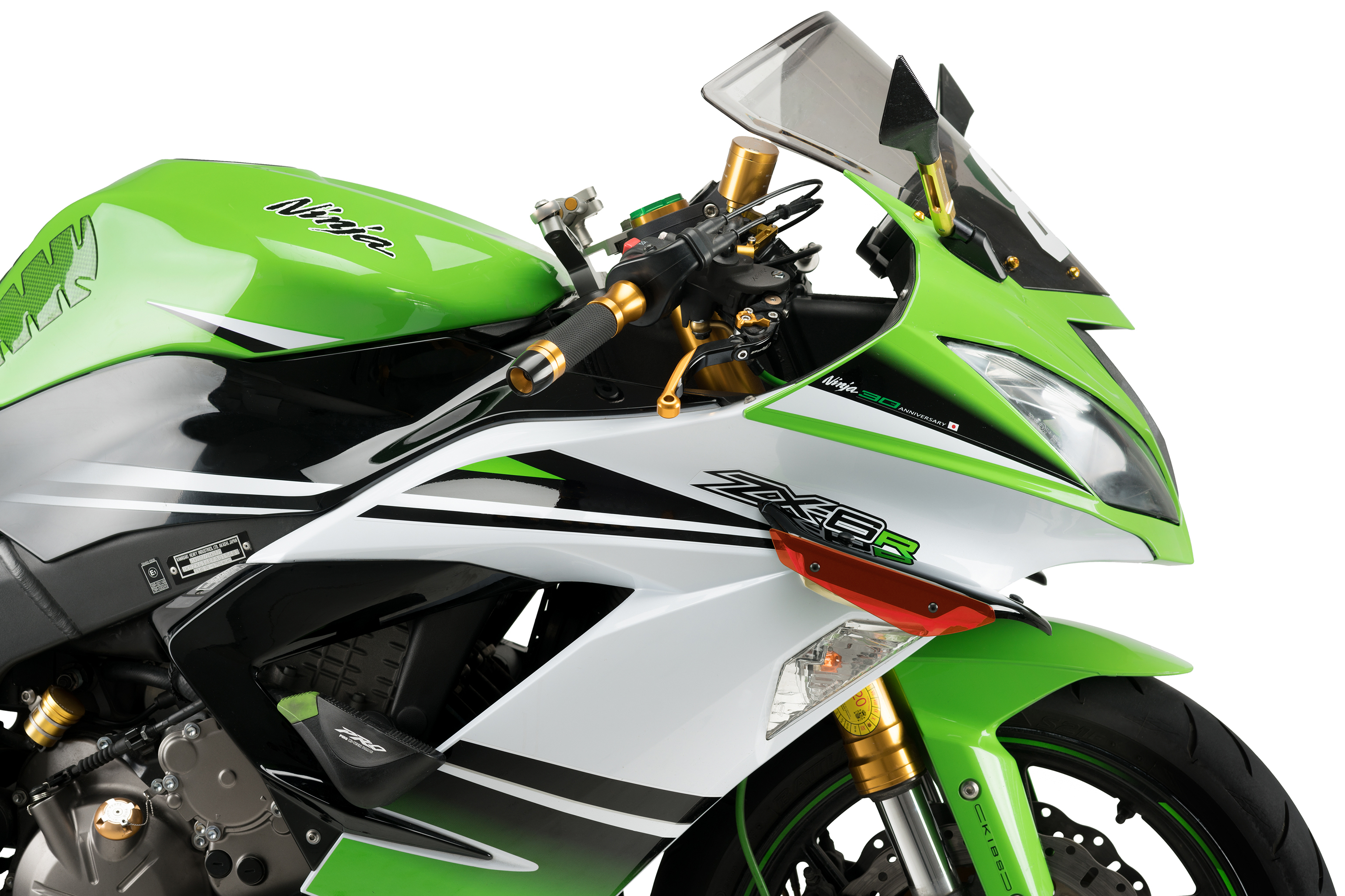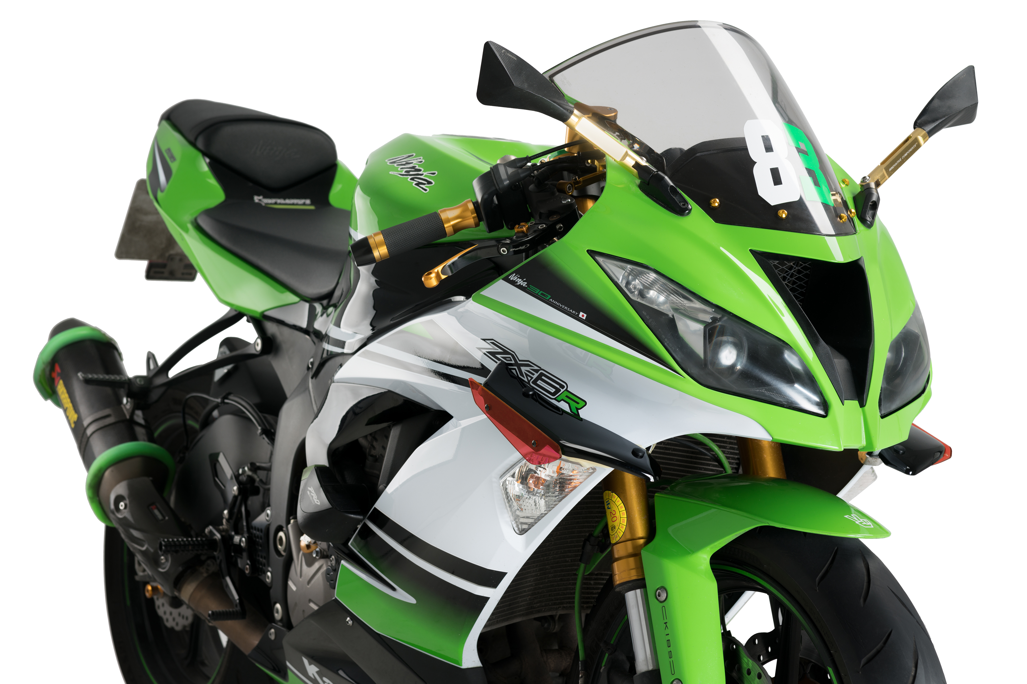 Jetzt können Sie und Ihr Motorrad von der aerodynamischen Renntechnologie der Profis profitieren. Die Puig Downforce Sport Spoiler wurden nach den Erfahrung und Resultate der Tests entwickelt, die das Kawasaki Racing Team auf den WorldSBK-Meisterschaftsstrecken gesammelt haben. Holen Sie sich den ultimativen Renn-Touch für Ihr Motorrad und verbessern Sie Ihre Kurven mit den neuen Sport-Spoilern.