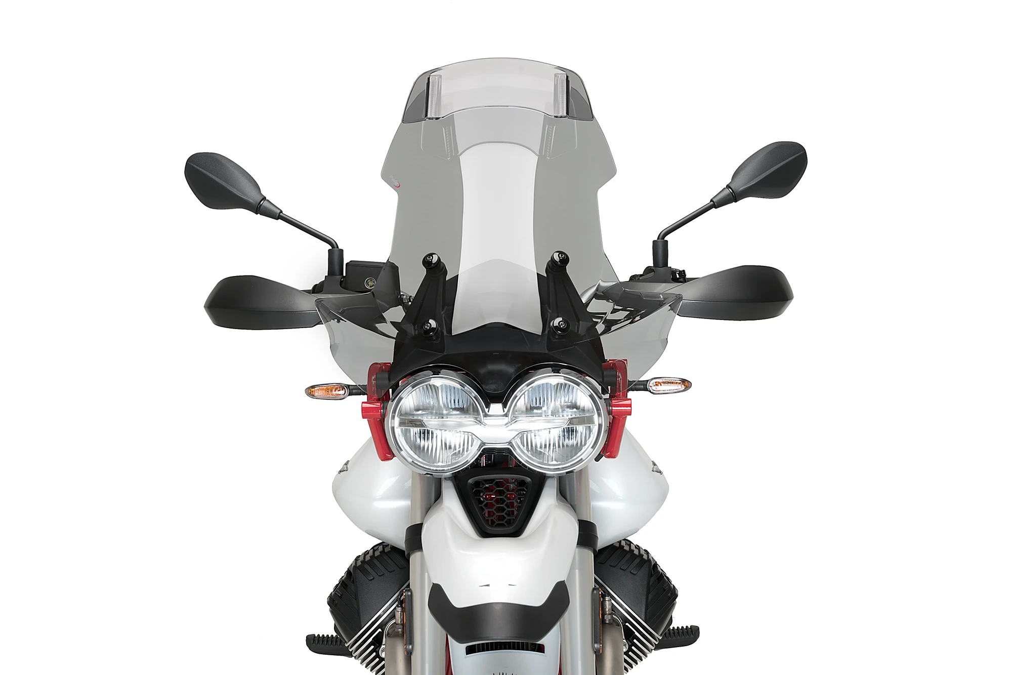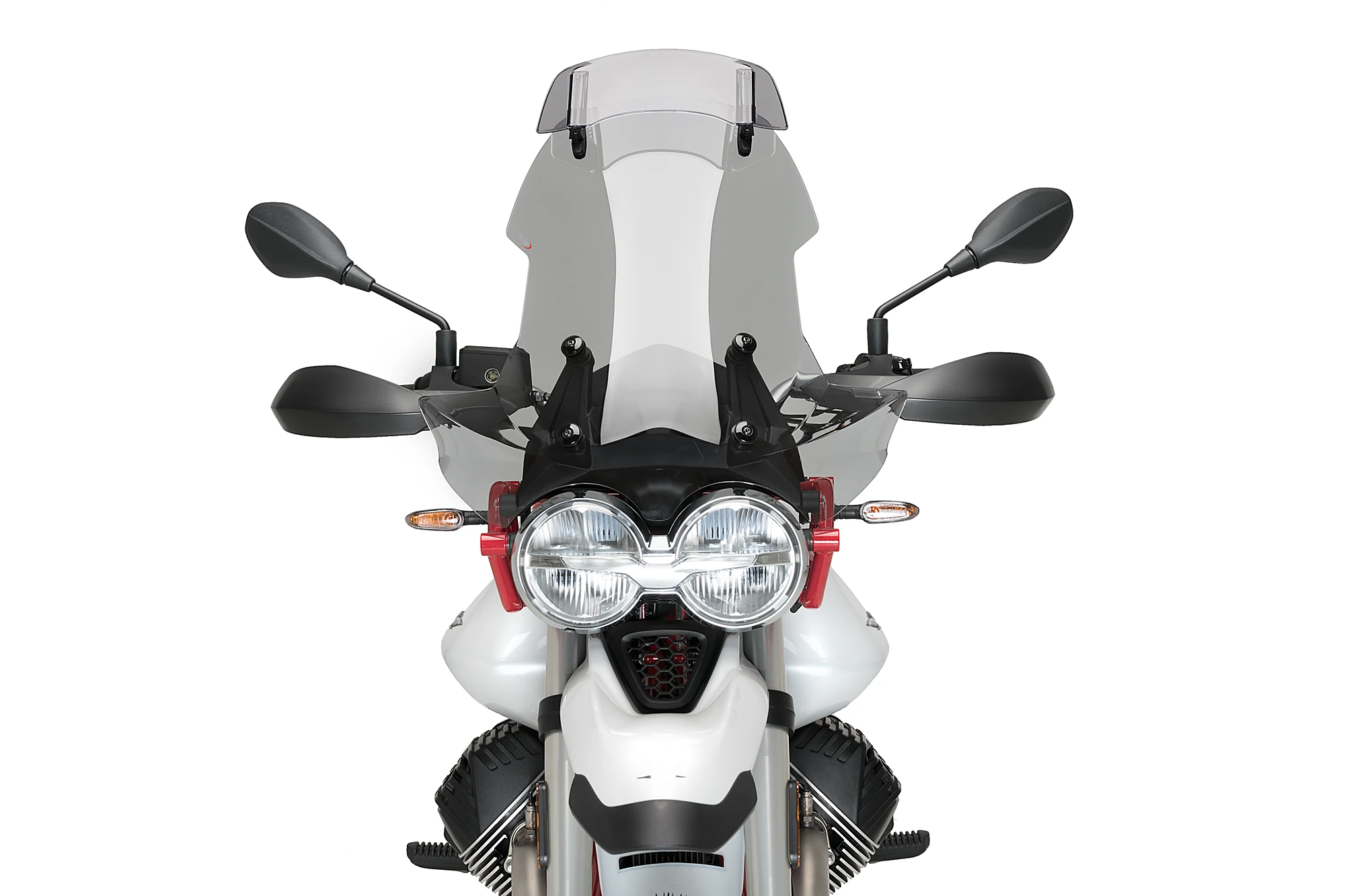 Sein spezielles Design und seine Abmessungen (300 mm breit und 130 mm hoch) sind optimal, um als Schutz vor Windböen zu wirken und diese von empfindlichen Bereichen wie dem Helm und dem Oberkörper des Fahrers abzuleiten. Darüber hinaus werden mögliche Turbulenzen und Geräusche vermieden, die beim Fahren stören oder ablenken können. Der Benutzer kann das Visier in bis zu 4 Drehpositionen einstellen, die zusammen mit den Führungen, die eine Höhenverstellung um 100 ermöglichen, zu unendlichen Positionen werden, die es erlauben, das Visier an die eigene Körpergröße oder Vorlieben anzupassen.