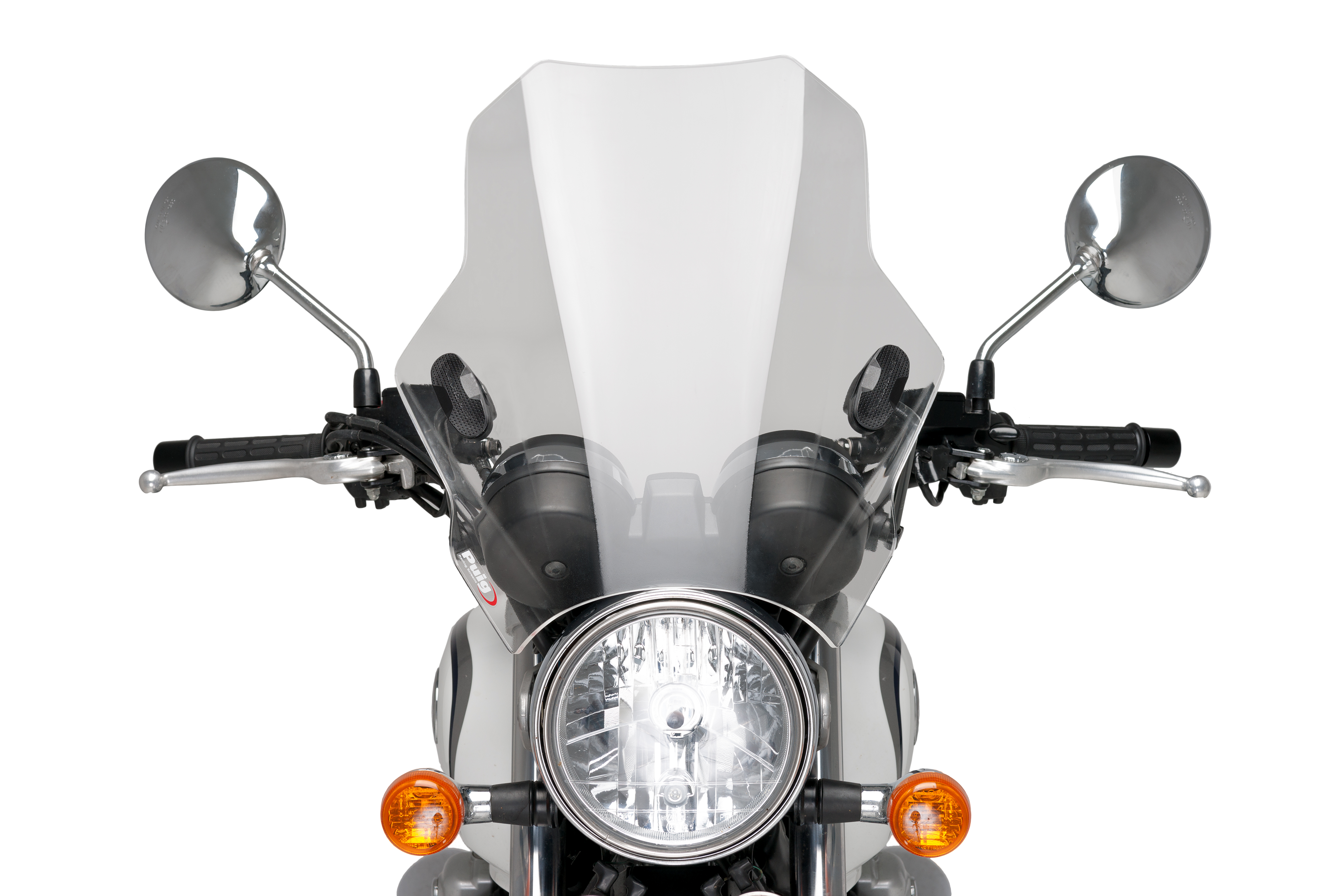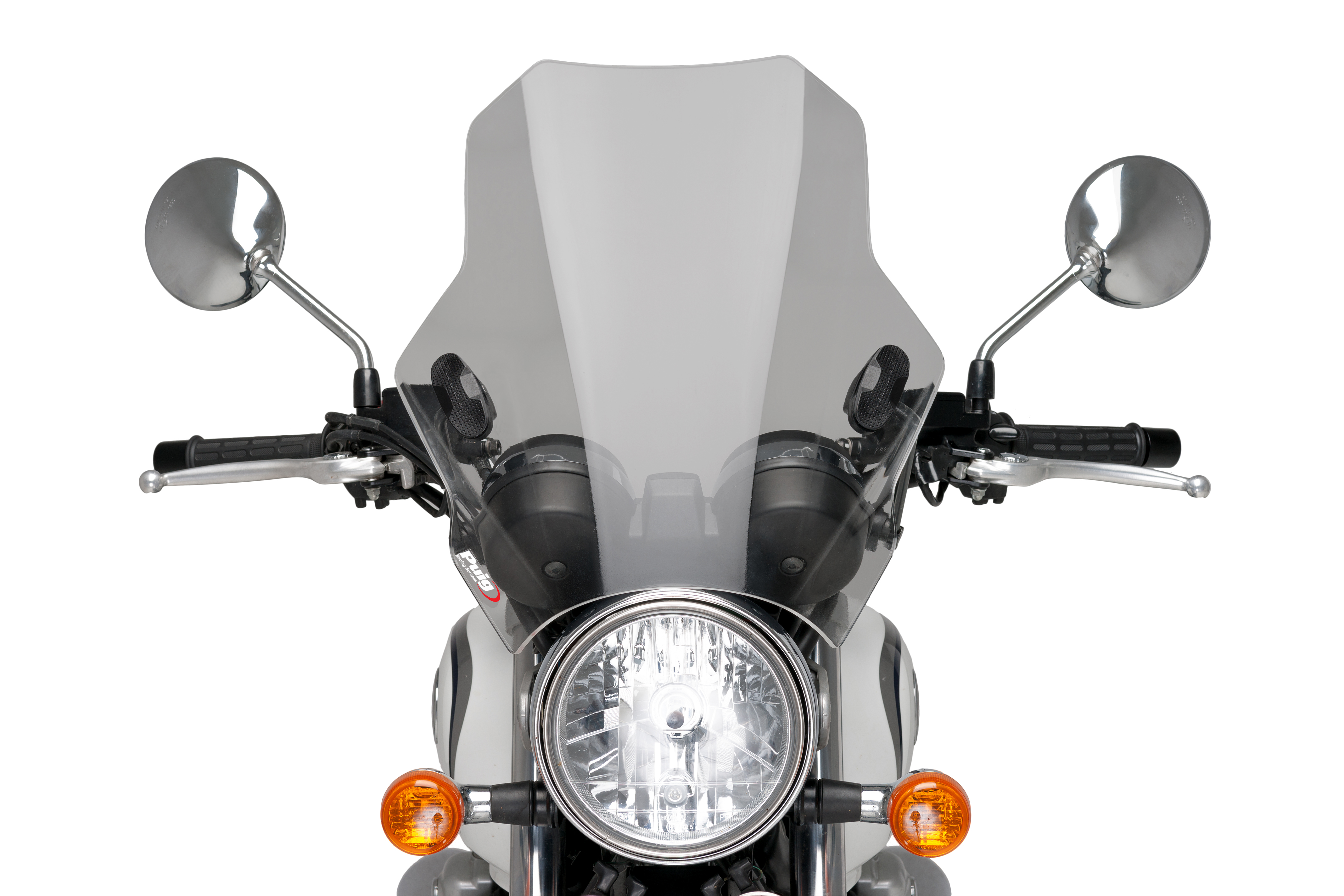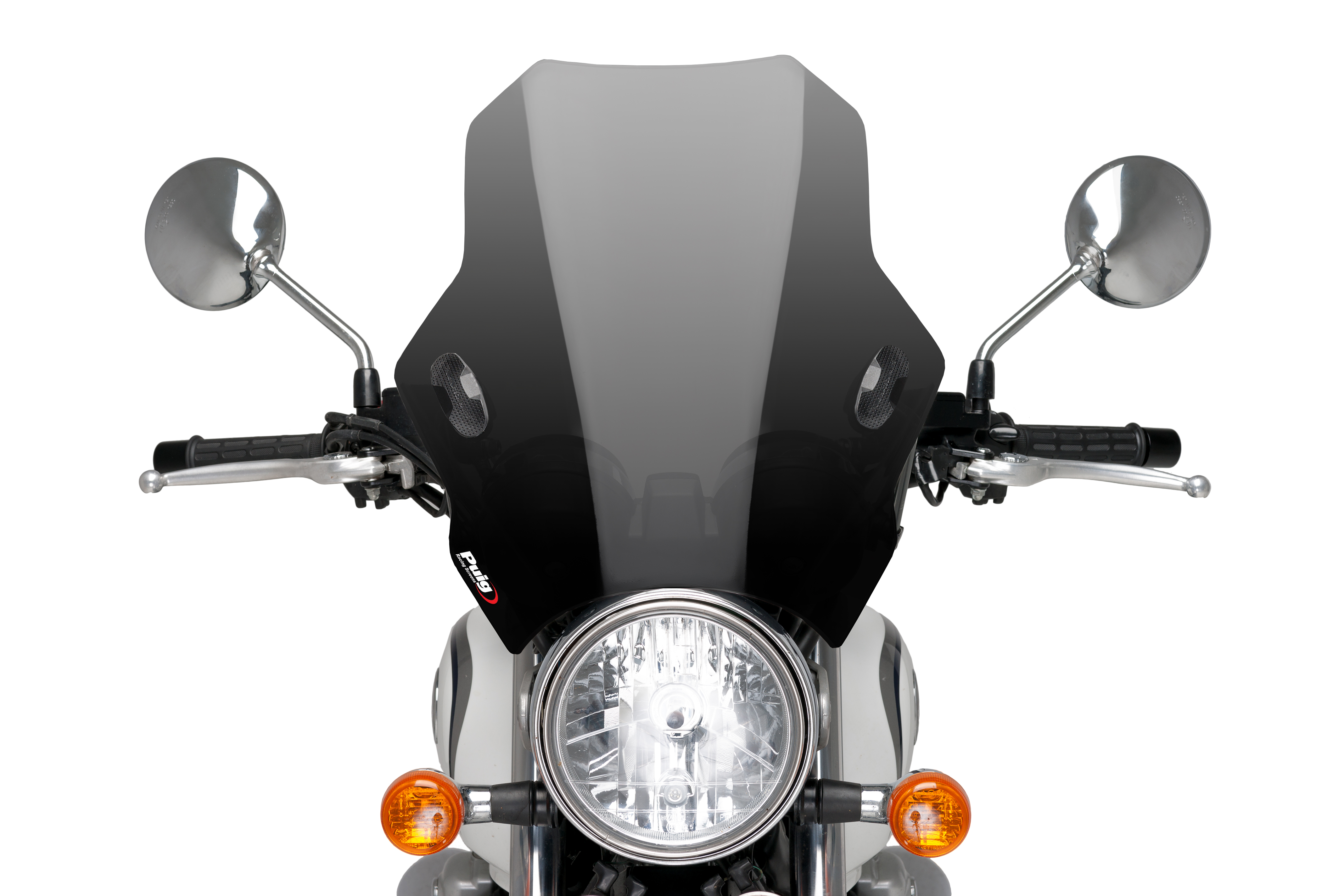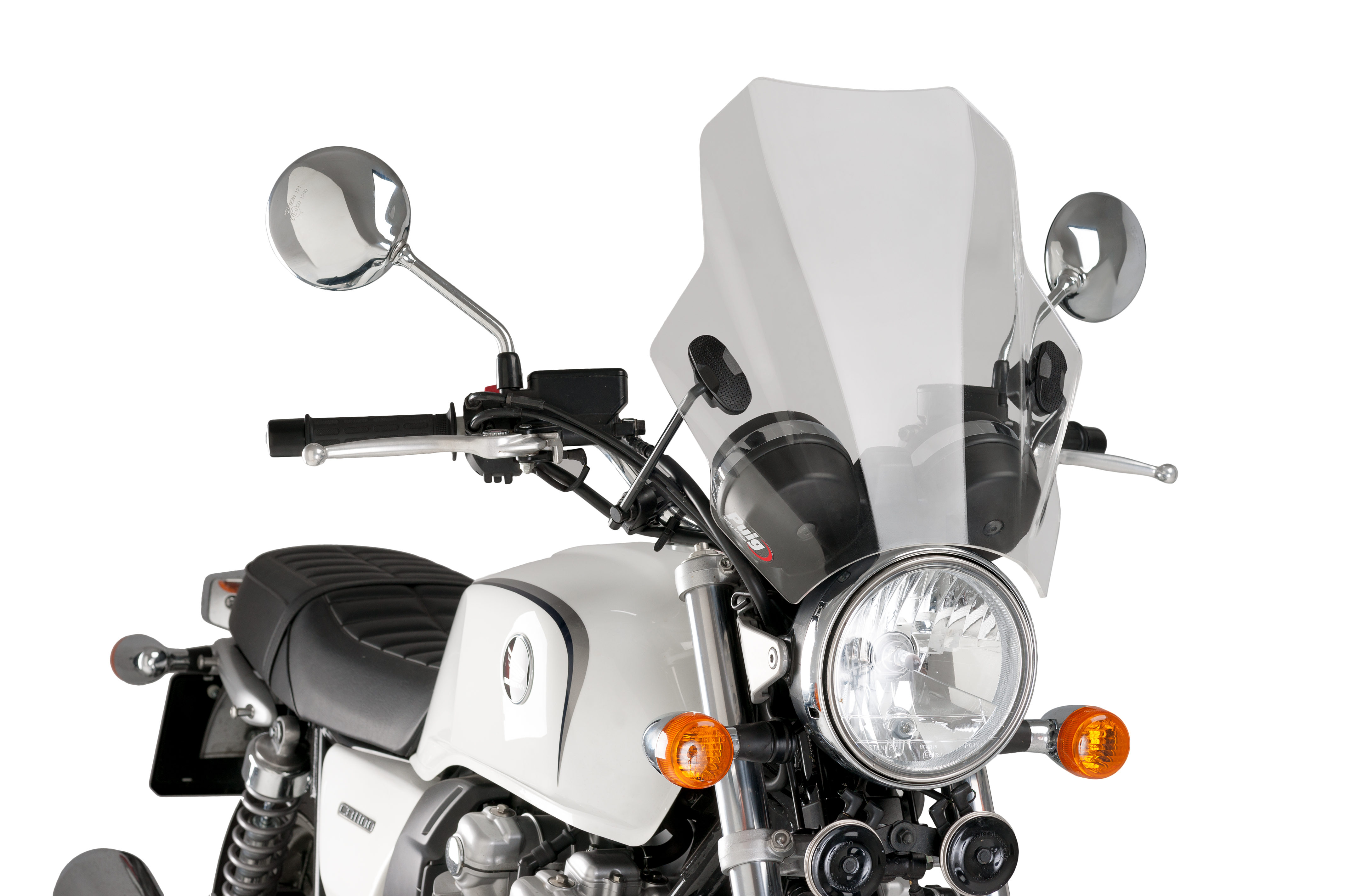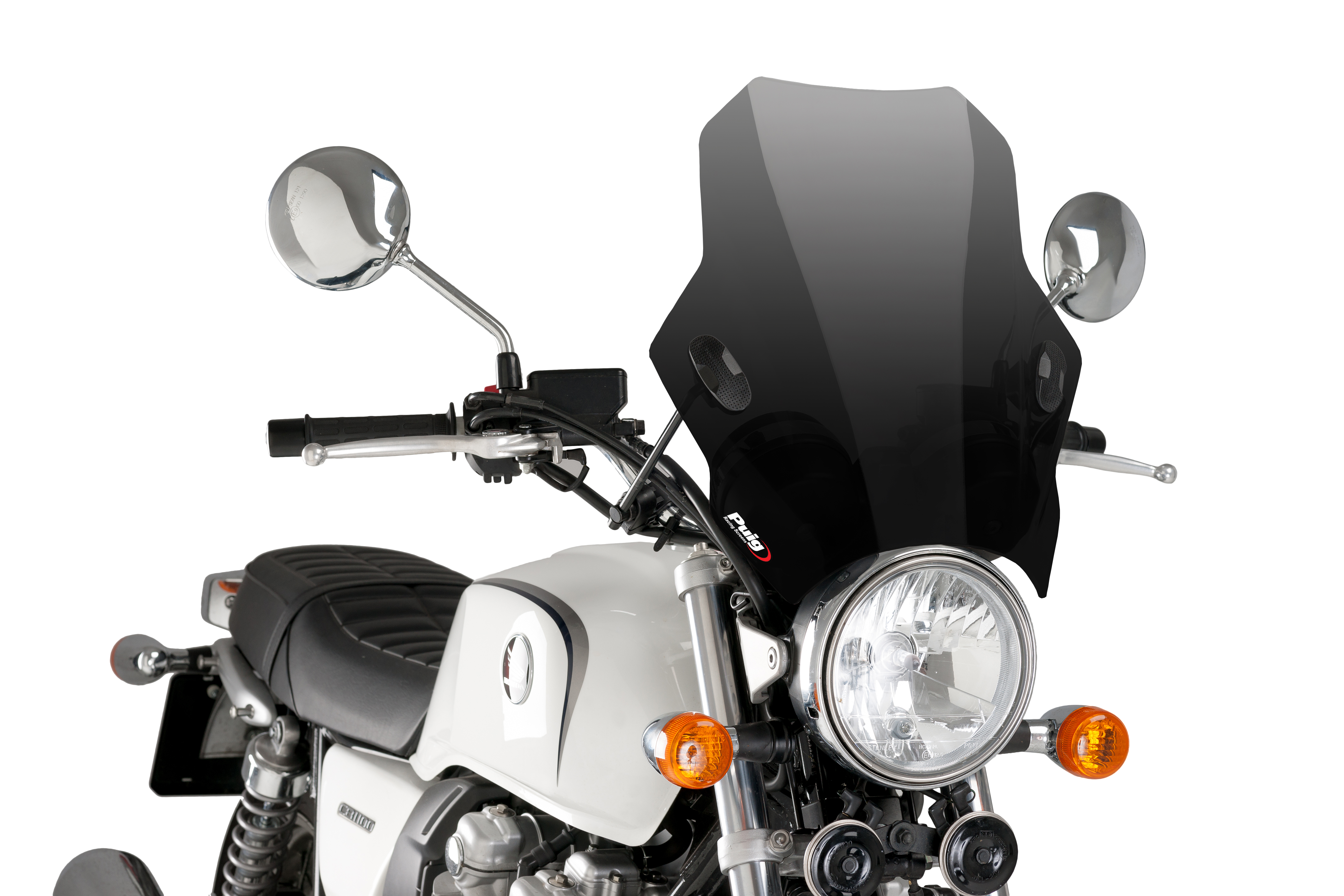 Erneuern Sie das Image Ihres Motorrads und schützen Sie sich während der Fahrt vor möglichen Unwettern mit der neuen Universal-Windschutzscheibe Bat von Puig.