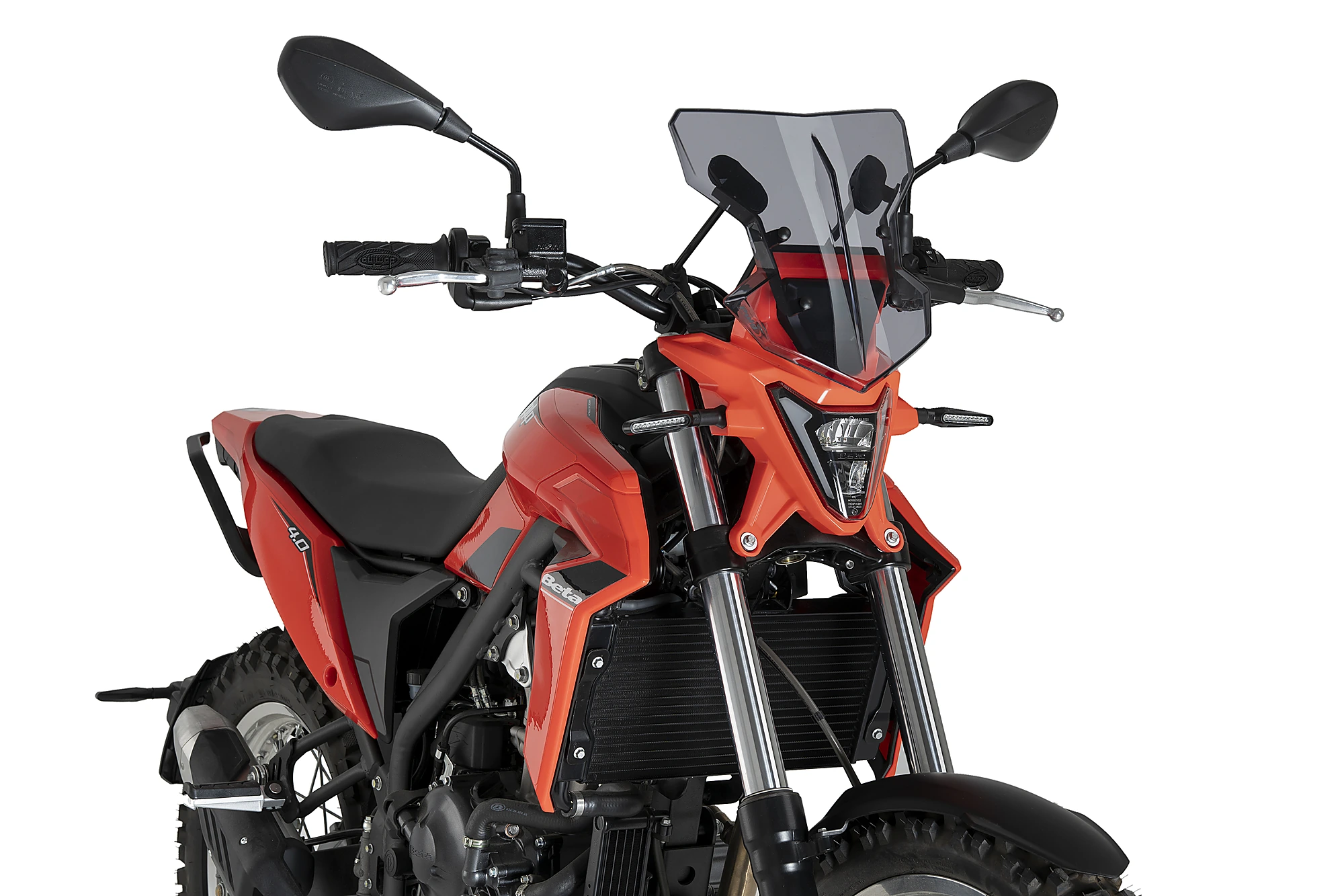 Die universelle Windschutzscheibe, Modell Flanker, passt sich dank der Montage an den Lenker mit Stange und Flansch an die meisten naked Modelle an. Dank seines ausgeklügelten und einfachen Systems kann dieses Teil problemlos an der passenden Stelle des Lenkers montiert werden.