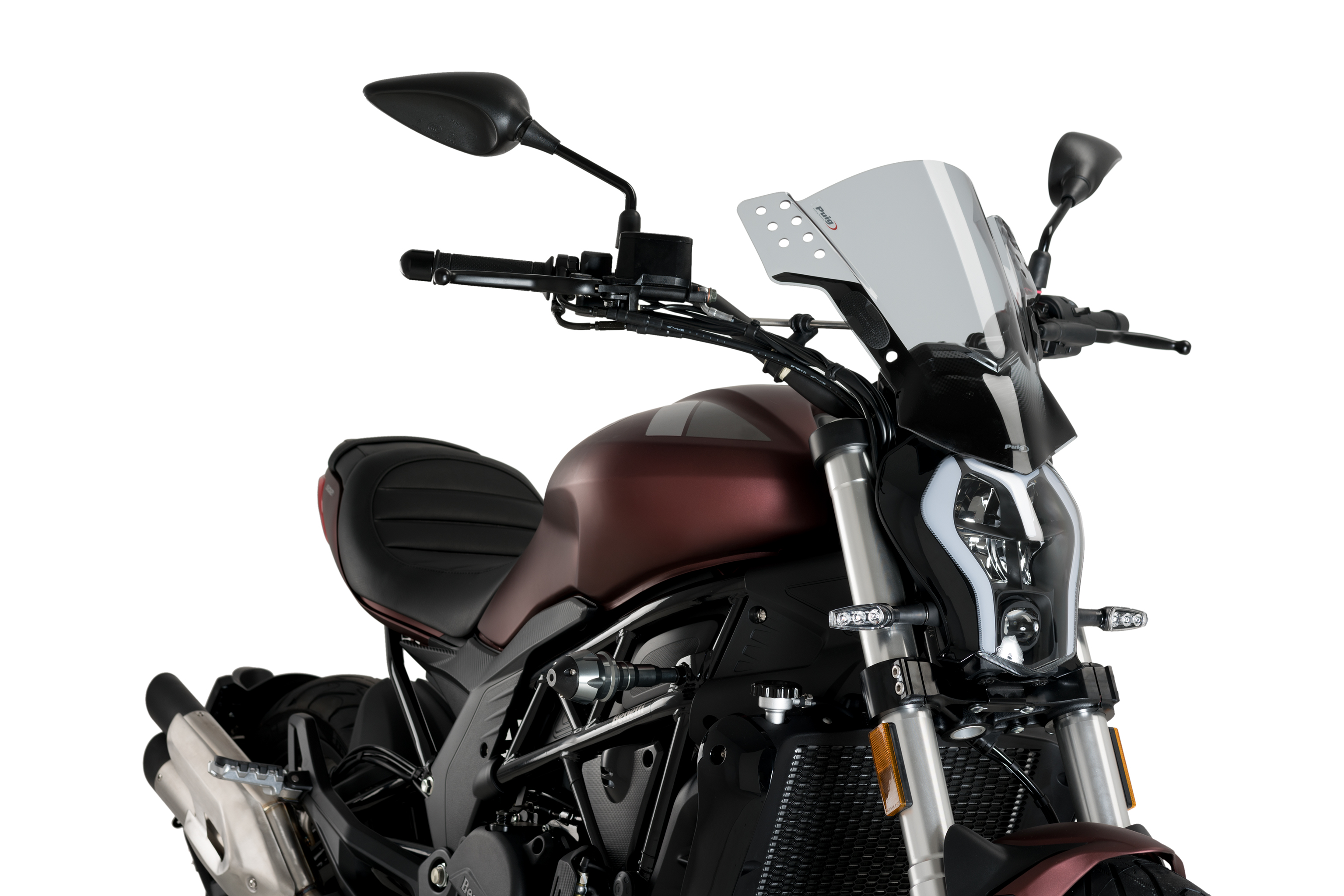 Verleihen Sie Ihrem Fahrrad mit dieser universellen RAFALE-Ausrüstung von PUIG einen aggressiveren und sportlicheren Touch. Speziell für NAKED-Motorradmodelle entwickelt, verbessert es die Aerodynamik und schützt den Fahrer vor Wind.