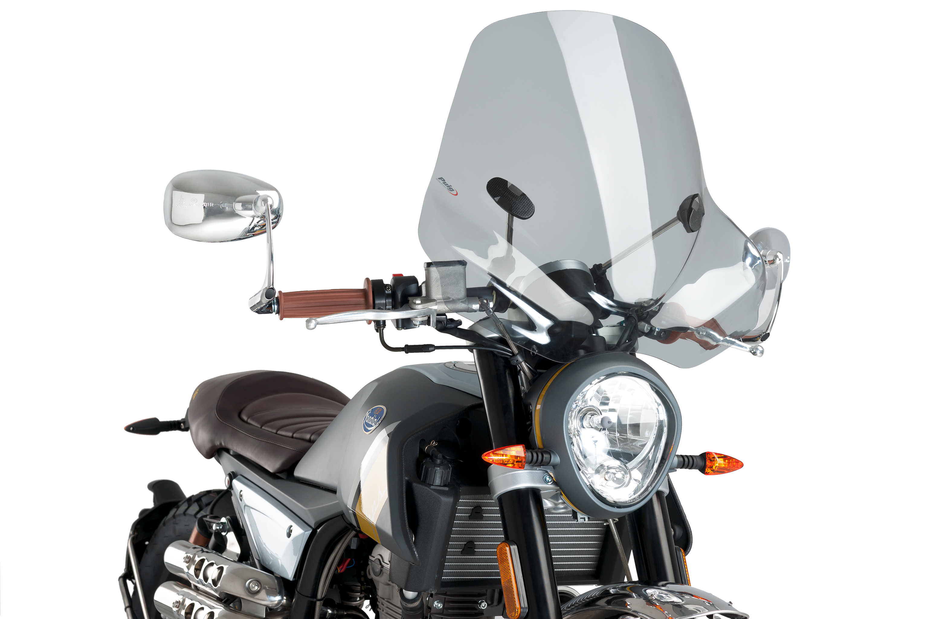 Erneuern Sie die Windschutzscheibe Ihres Motorrads und schützen Sie sich vor Wind mit der universellen Touring II Windschutzscheibe von Puig.