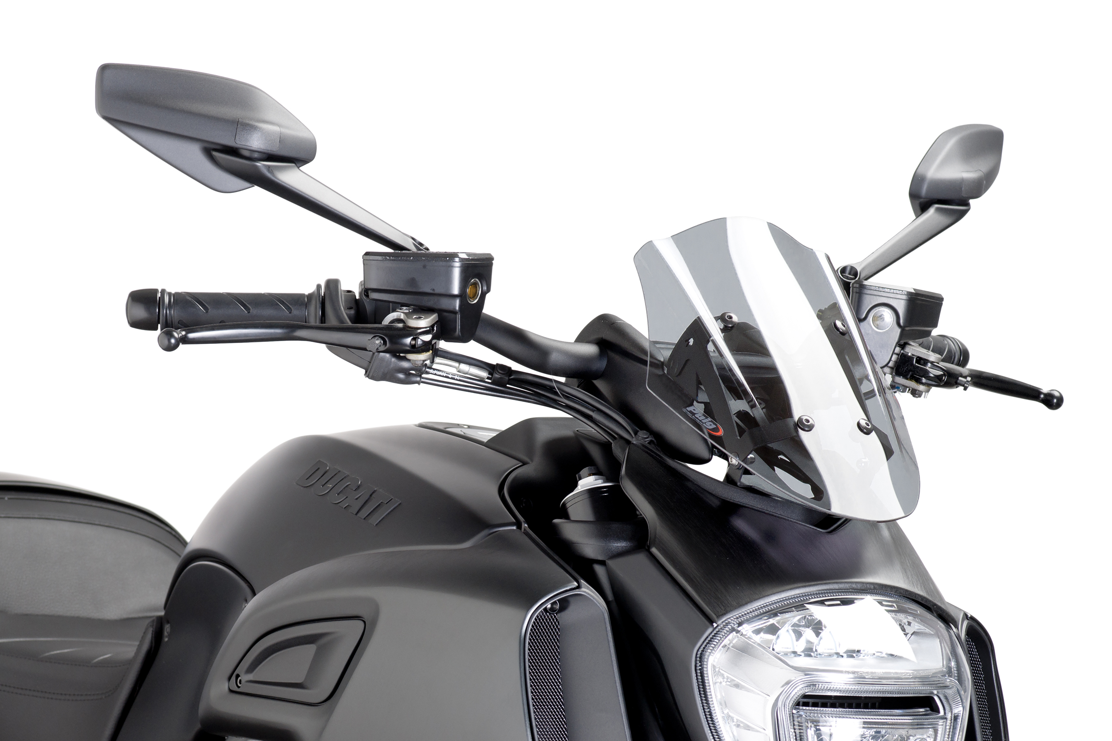 Die Scheibe mit manuellen Hebemechanismus, verbessert die Leistung Ihrer Diucati Diavel und bietet Ihnen, dank des M.E.M., zu jeder Zeit, in jeder Situation Ihres Fahrens, einen aerodynamischen und anpassungsfähigen Schutz.