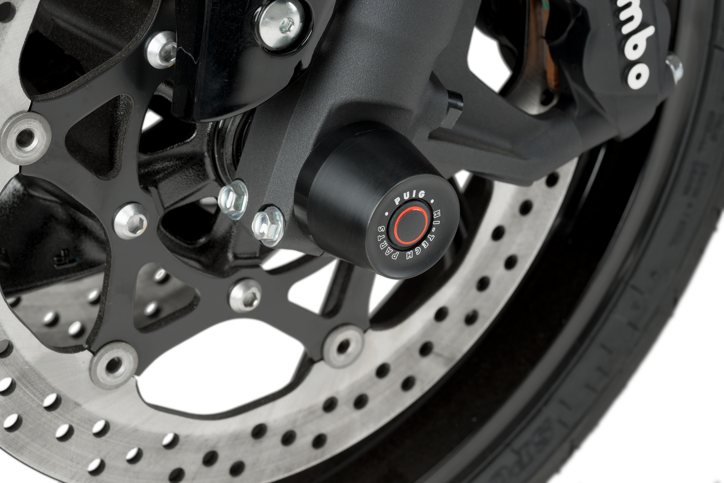 A practical high resistance front fork protector with a racing look for your motorbike. Manufacturated through a nylon block. Weight of 265 grams, protecting fork and swing arm protection.