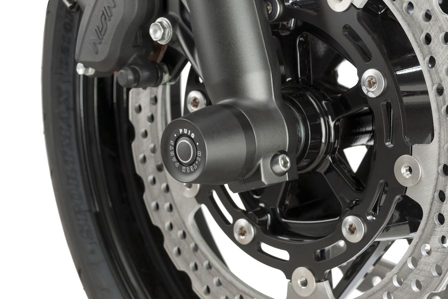 A practical high resistance front fork protector with a racing look for your motorbike. Manufacturated through a nylon block. Weight of 265 grams, protecting fork and swing arm protection.