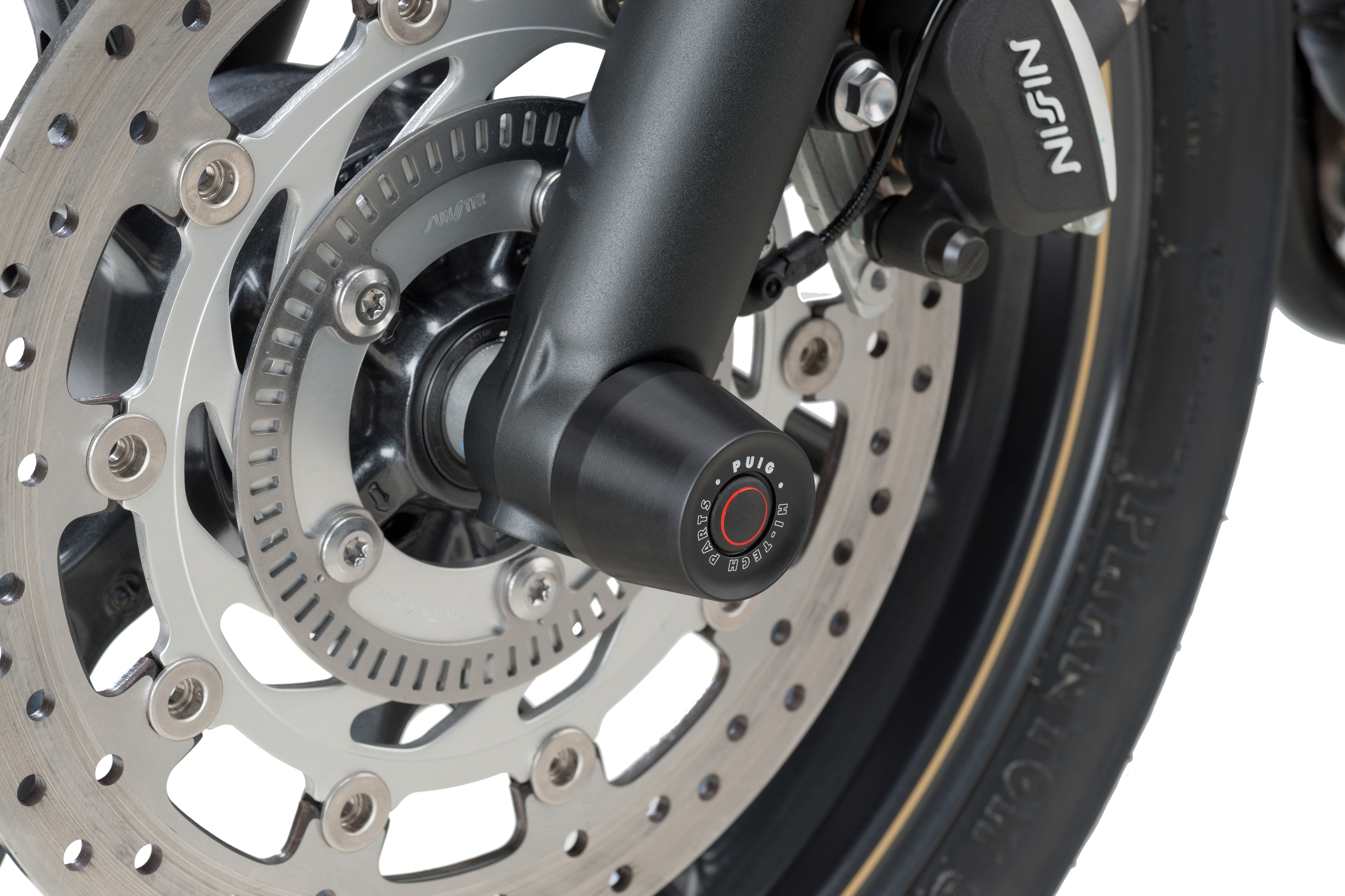 A practical high resistance front fork protector with a racing look for your motorbike. Manufacturated through a nylon block. Weight of 265 grams, protecting fork and swing arm protection.