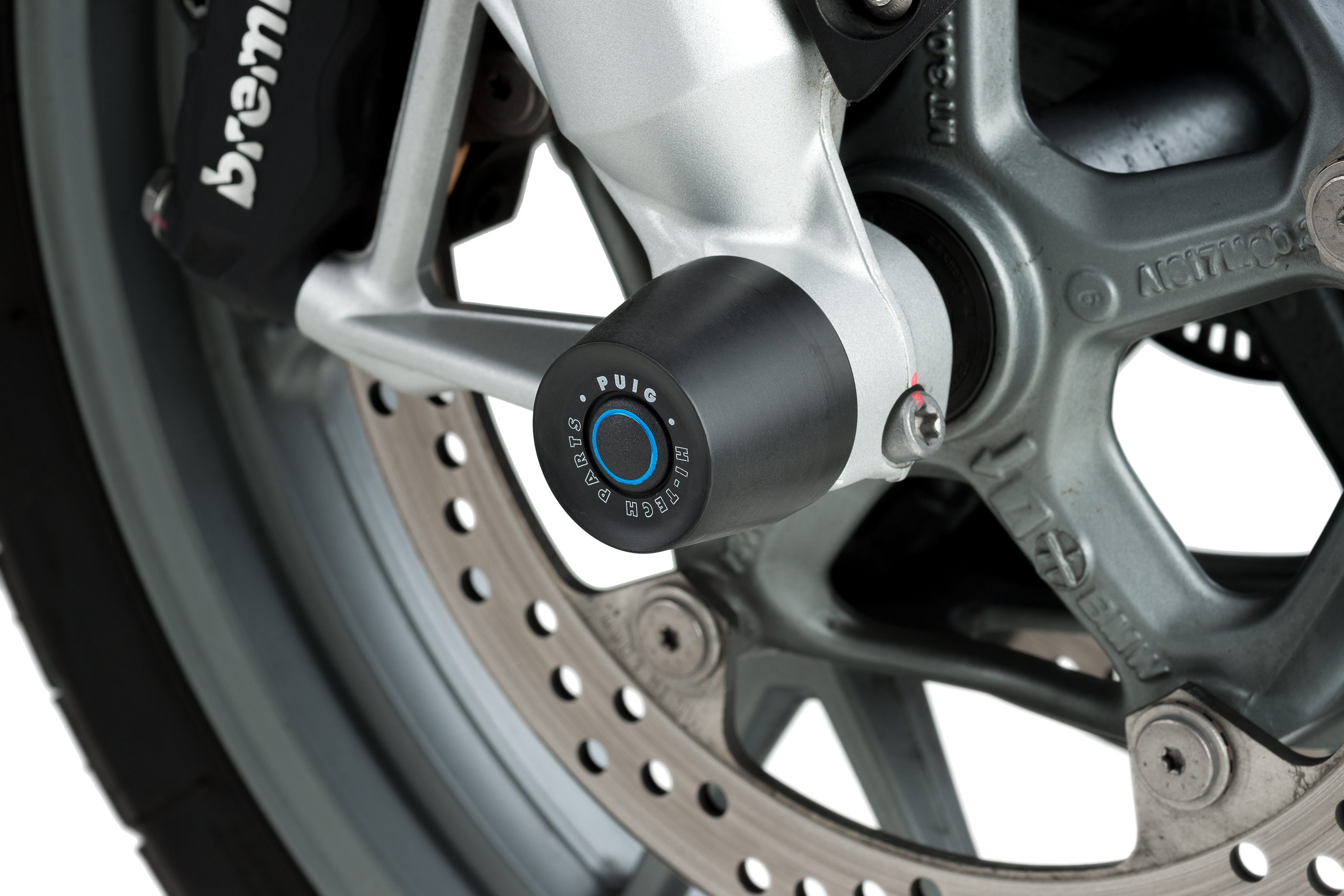 A practical high resistance front fork protector with a racing look for your motorbike. Manufacturated through a nylon block. Weight of 265 grams, protecting fork and swing arm protection.