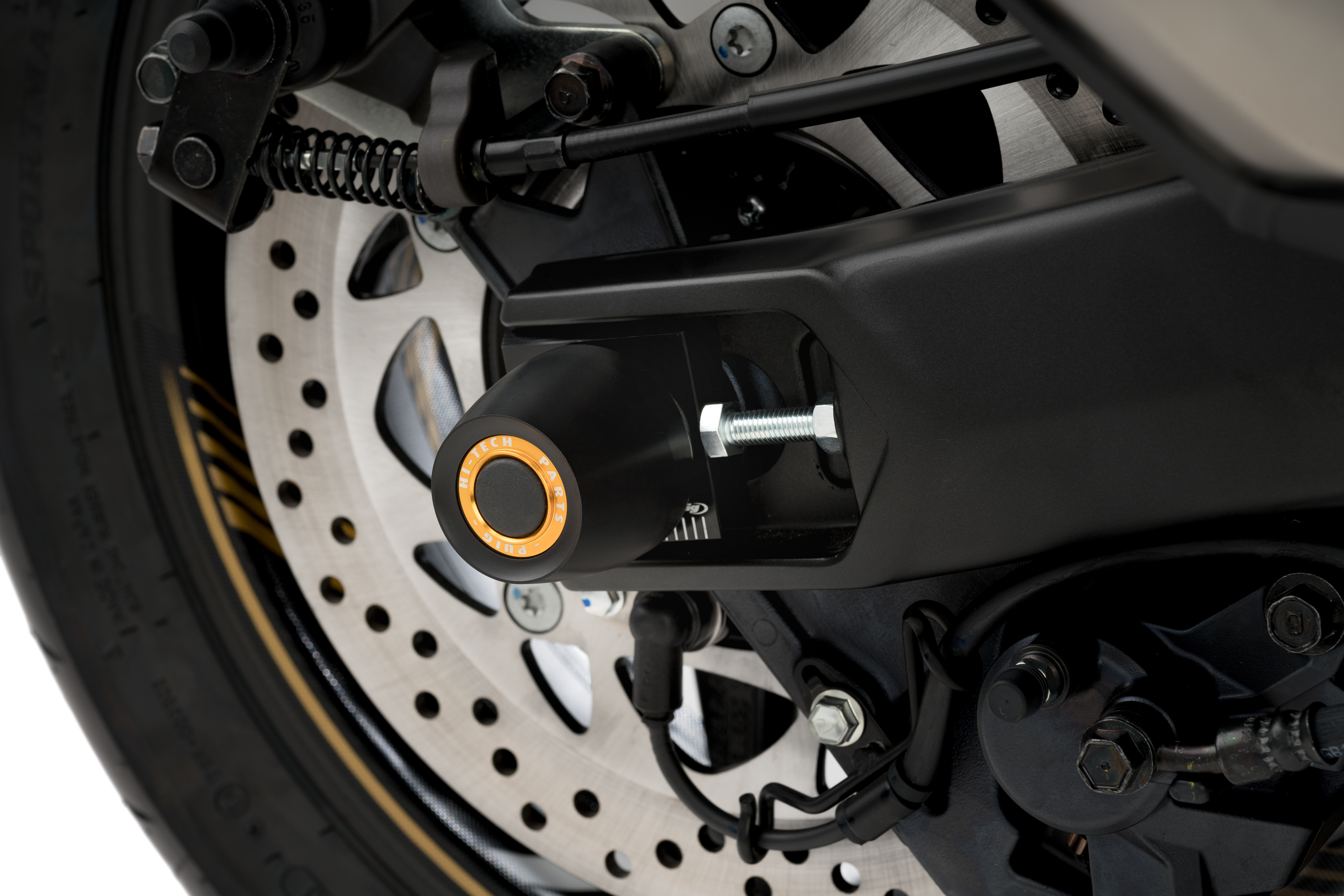 Offer greater protection to the swingarm of your motorcycle with the new PHB 19 rear axle slider from PUIG. Machined from a nylon block with a reduced weight of 265 gr, it will protect this delicate area of your motorcycle while it reinforces the suspension. In addition to the protective function, its design inspired by the "Racing" style will show the true competitive character of your bike.