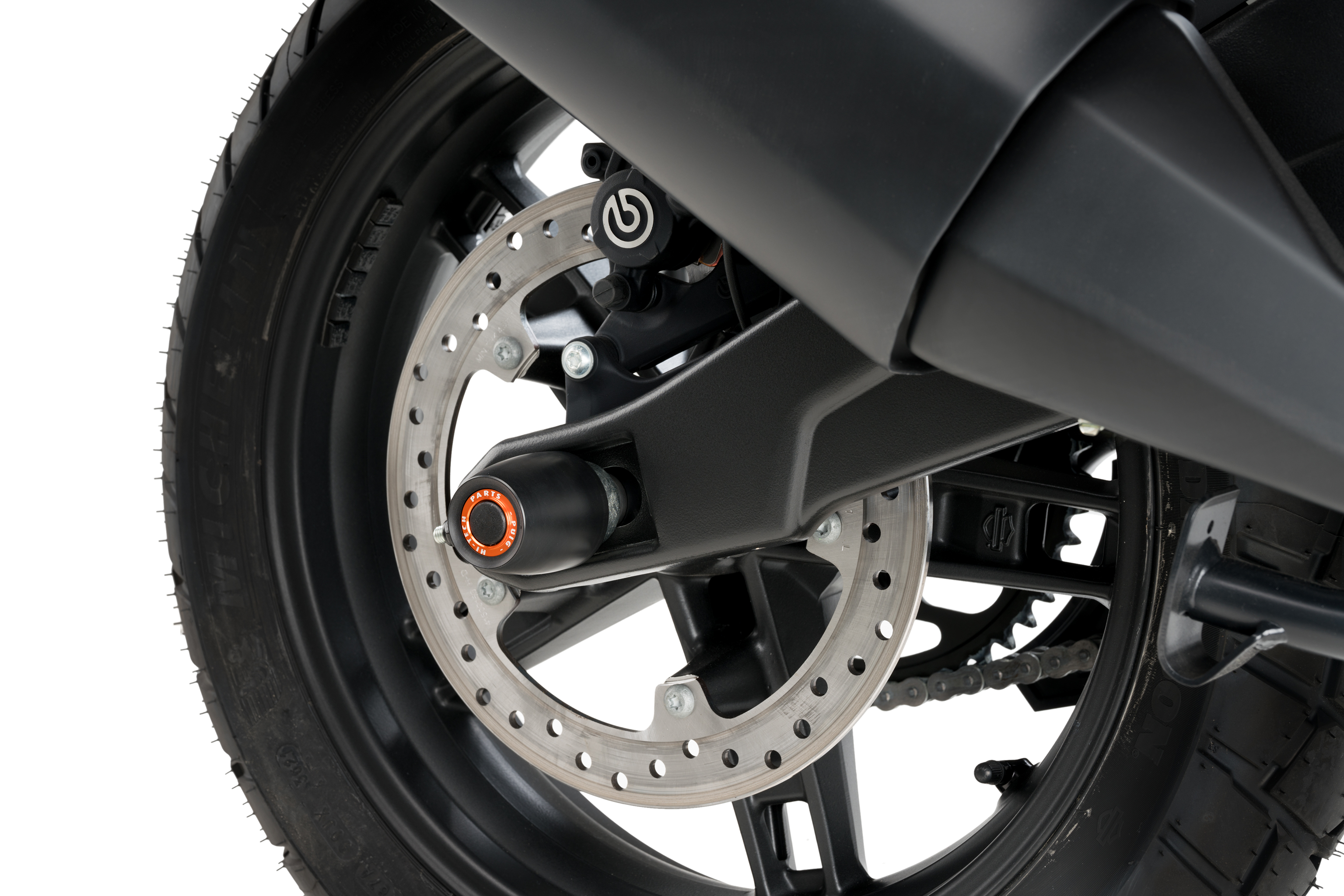 Offer greater protection to the swingarm of your motorcycle with the new PHB 19 rear axle slider from PUIG. Machined from a nylon block with a reduced weight of 265 gr, it will protect this delicate area of your motorcycle while it reinforces the suspension. In addition to the protective function, its design inspired by the "Racing" style will show the true competitive character of your bike.