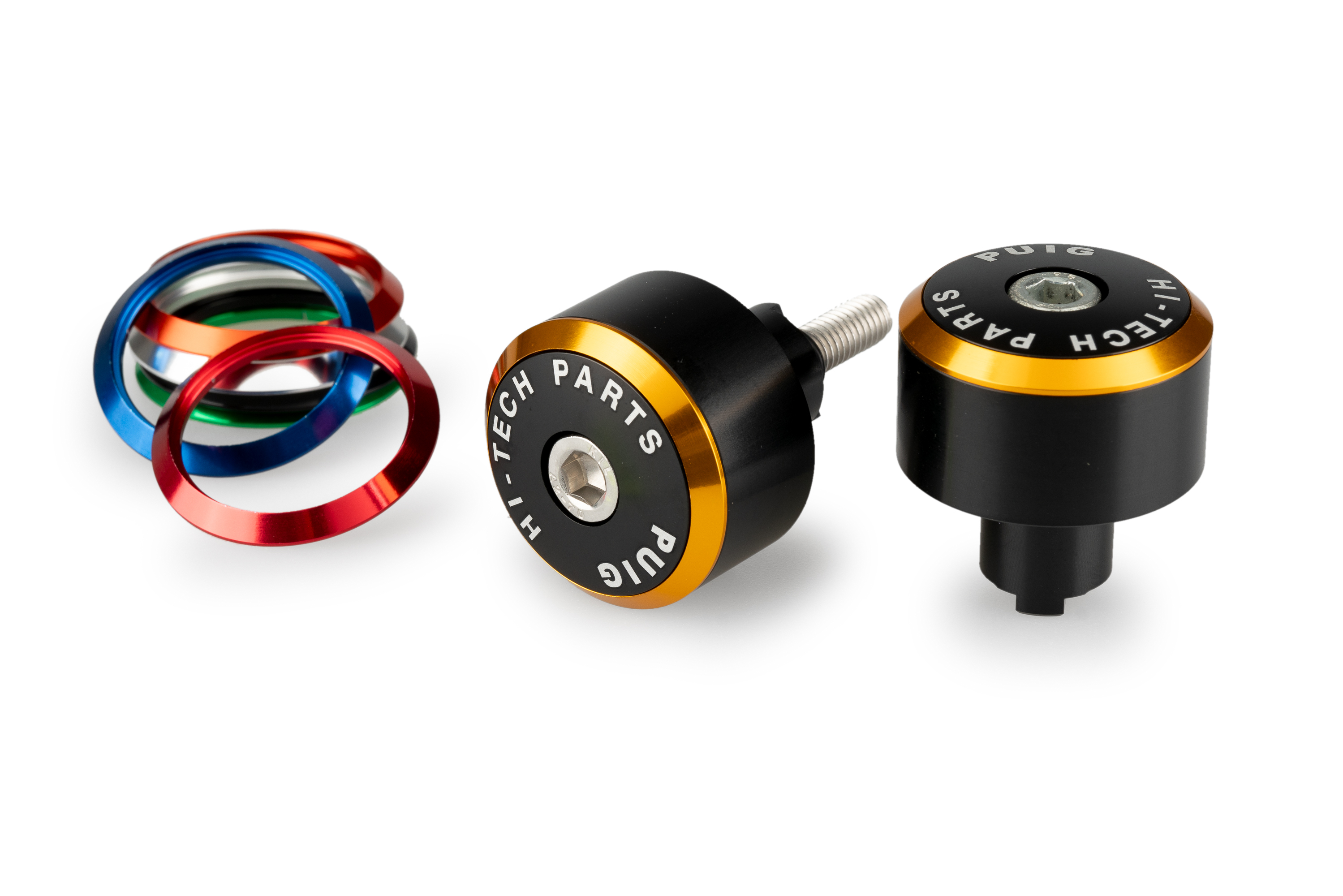 Manufactured from a block of high-quality aluminum to obtain a piece that is both light and resistant. They are made up of three parts, a central body, a ring available in various colors to achieve the best combination with the motorcycle, and an end cap with the Puig Hi-Tech Parts inscription.